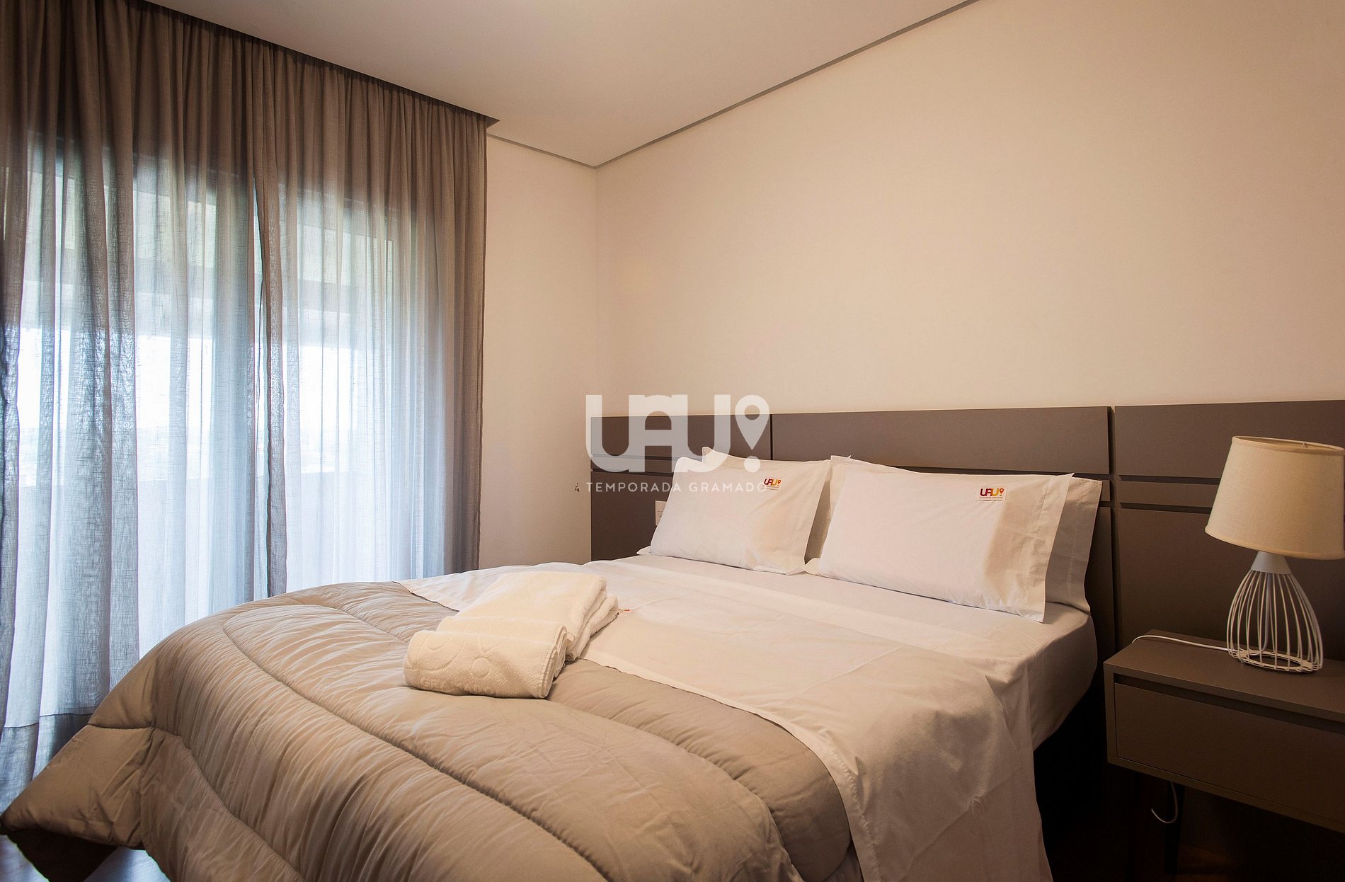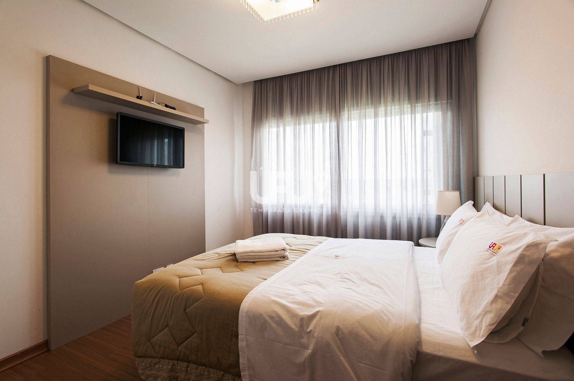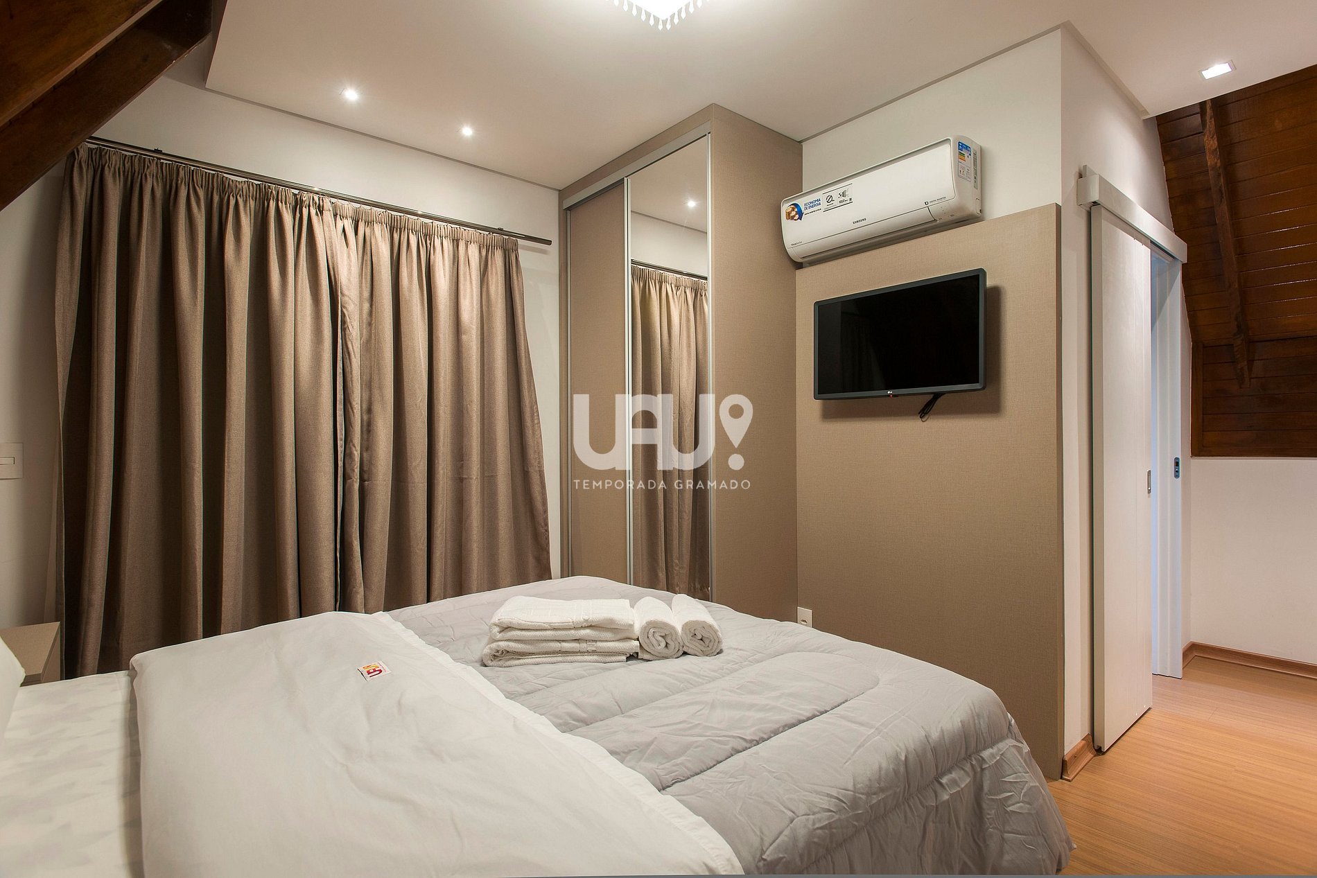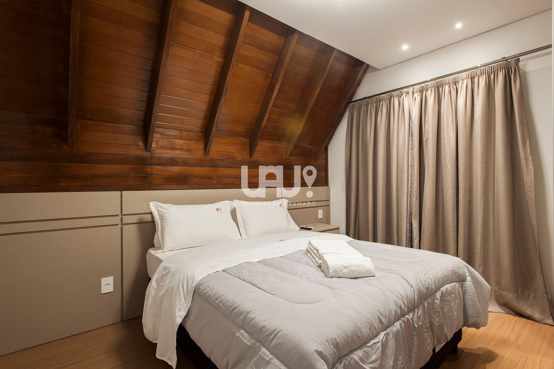Duas amplas suítes com camas Queen e 2 camas auxiliares, Split Q/F e SmartTVs com Sky (uma com sacada com vista para a Aldeia do Papai Noel);