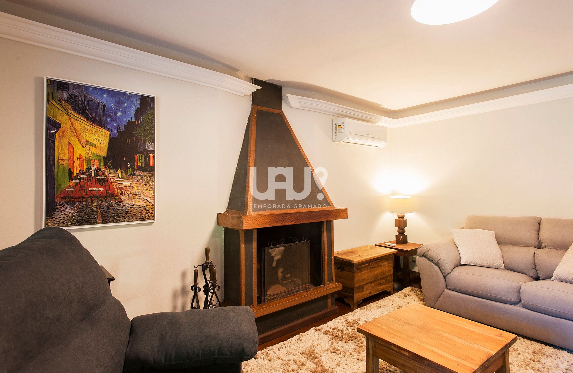 Living em dois ambientes, com sala de TV (smarTV 50') e sala de estar, com lareira;