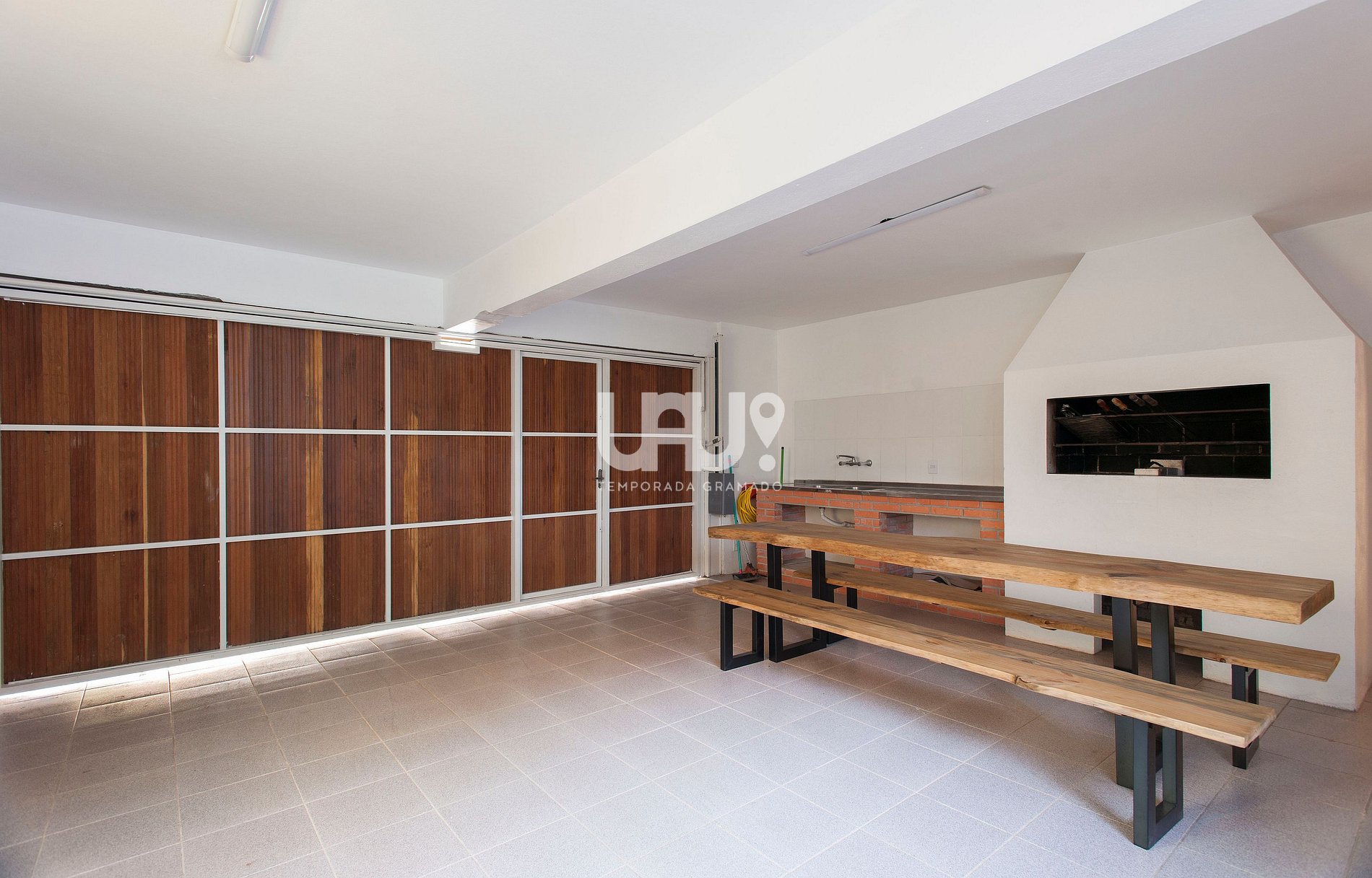 Garagem estilo "salão de festas", com churrasqueira e mesa para servir;
