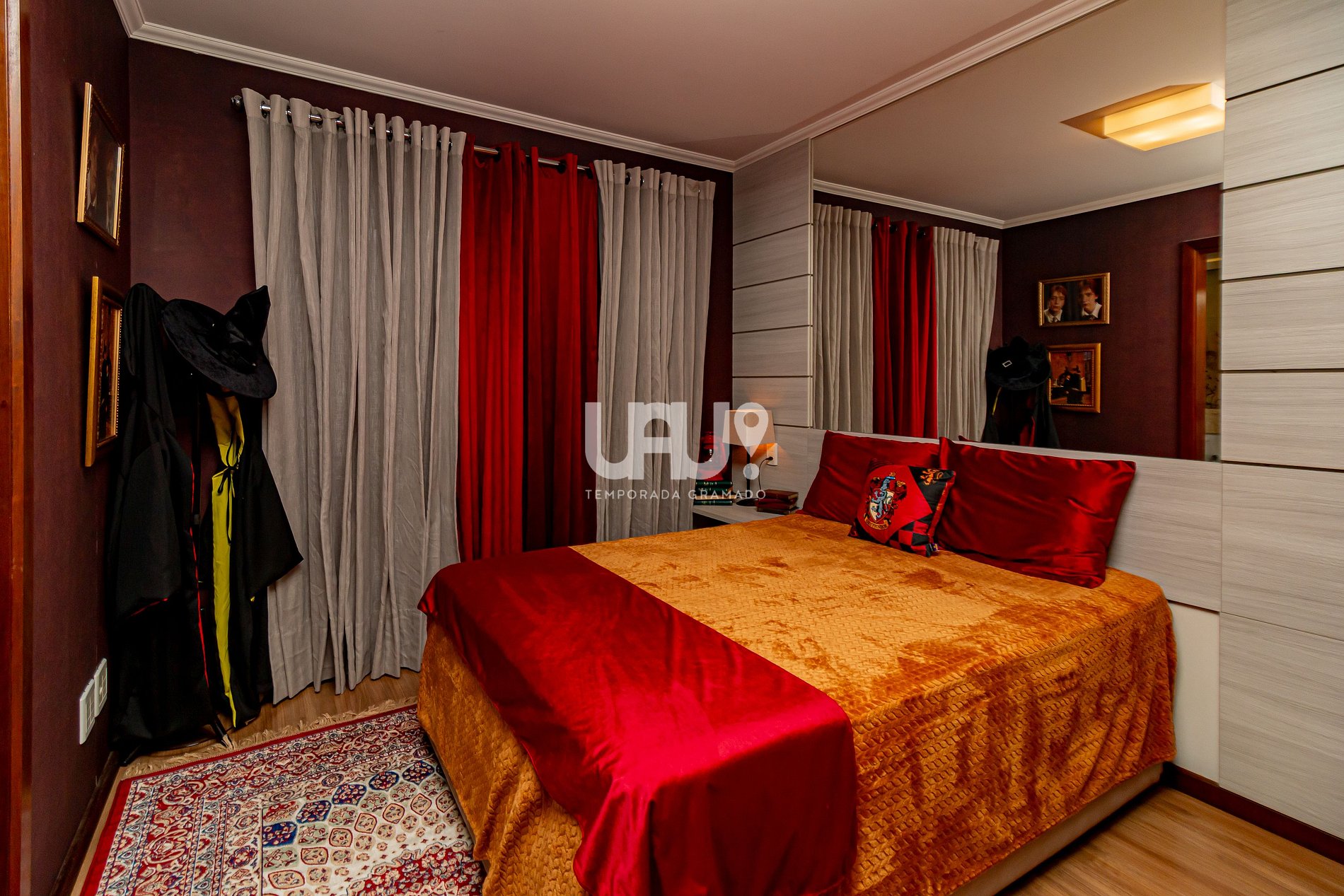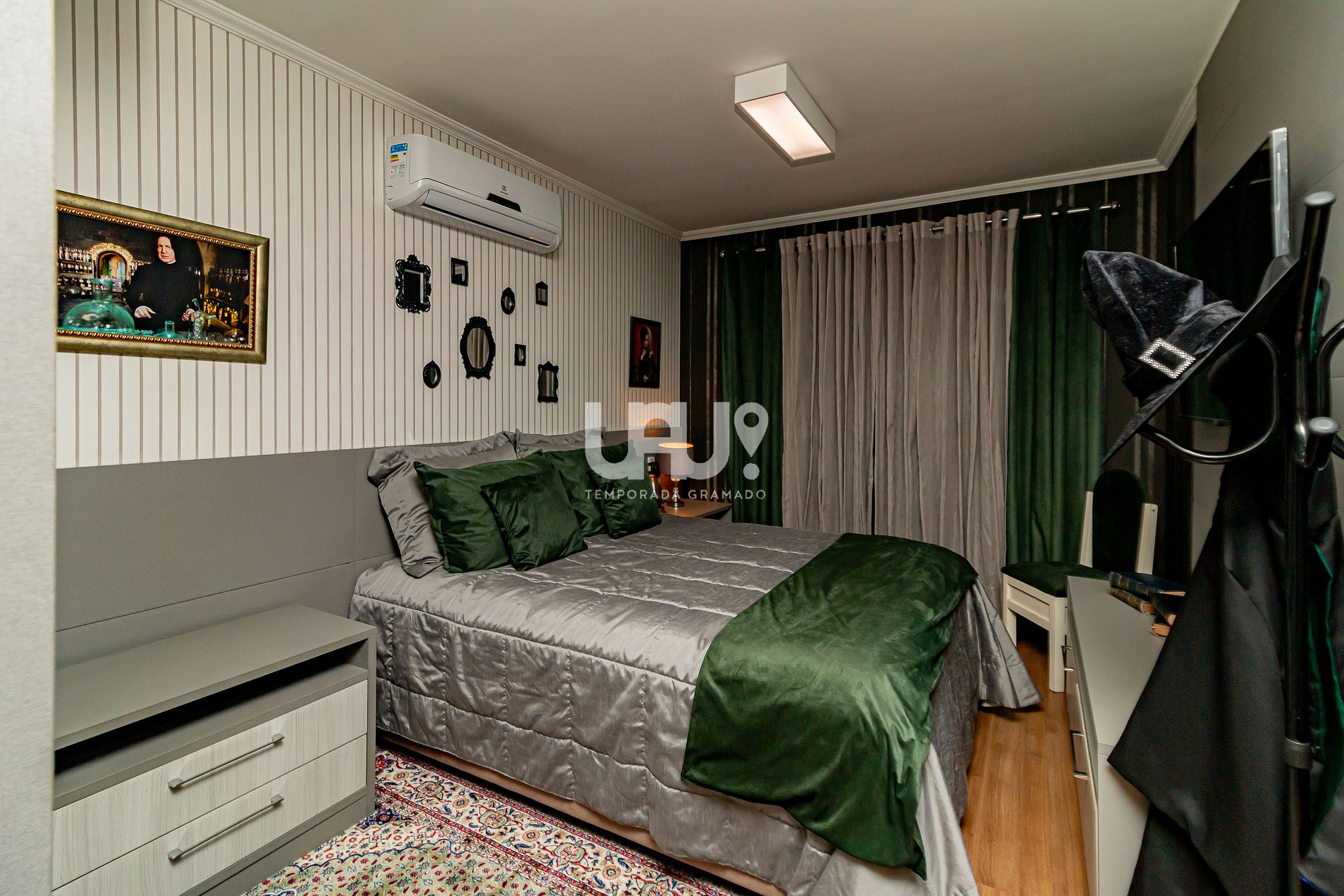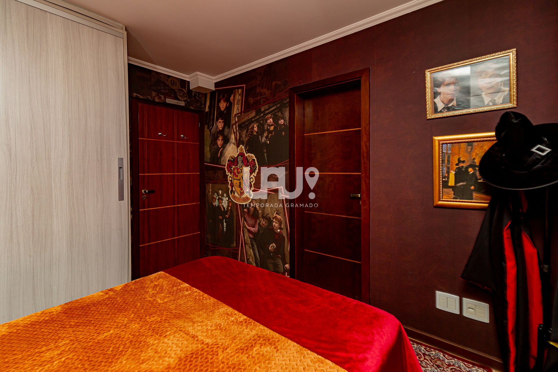 Decorado na temática e atmosfera mágica do mundo bruxo, ideal também para trouxas, após verificar a qual casa você pertence com o chapéu seletor, você poderá dormir na cama de casal da suíte Grifinória ou na cama Queen na suíte Sonserina, ambas as suítes possuem camas auxiliares caso sua família seja grande como a família Wesley.