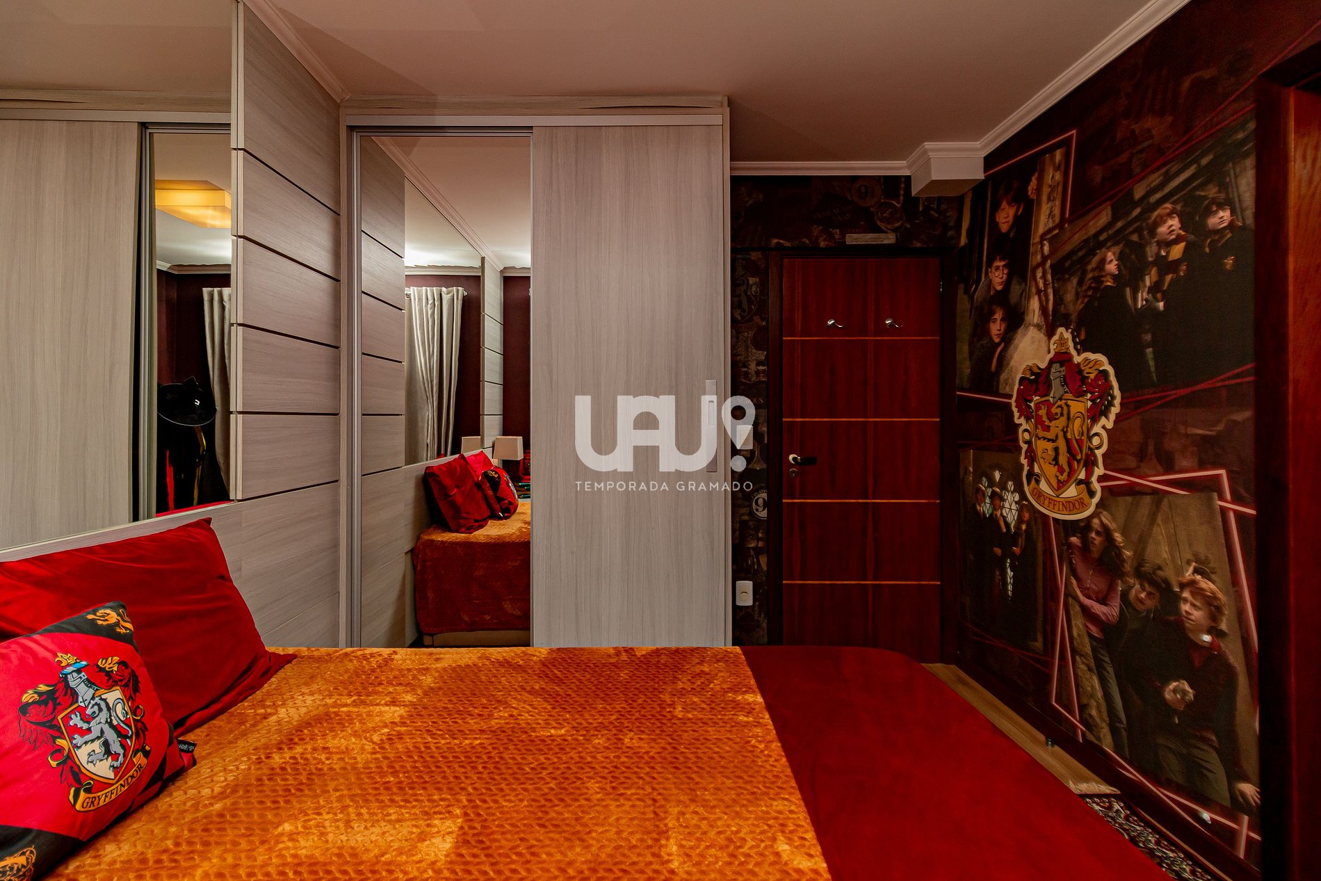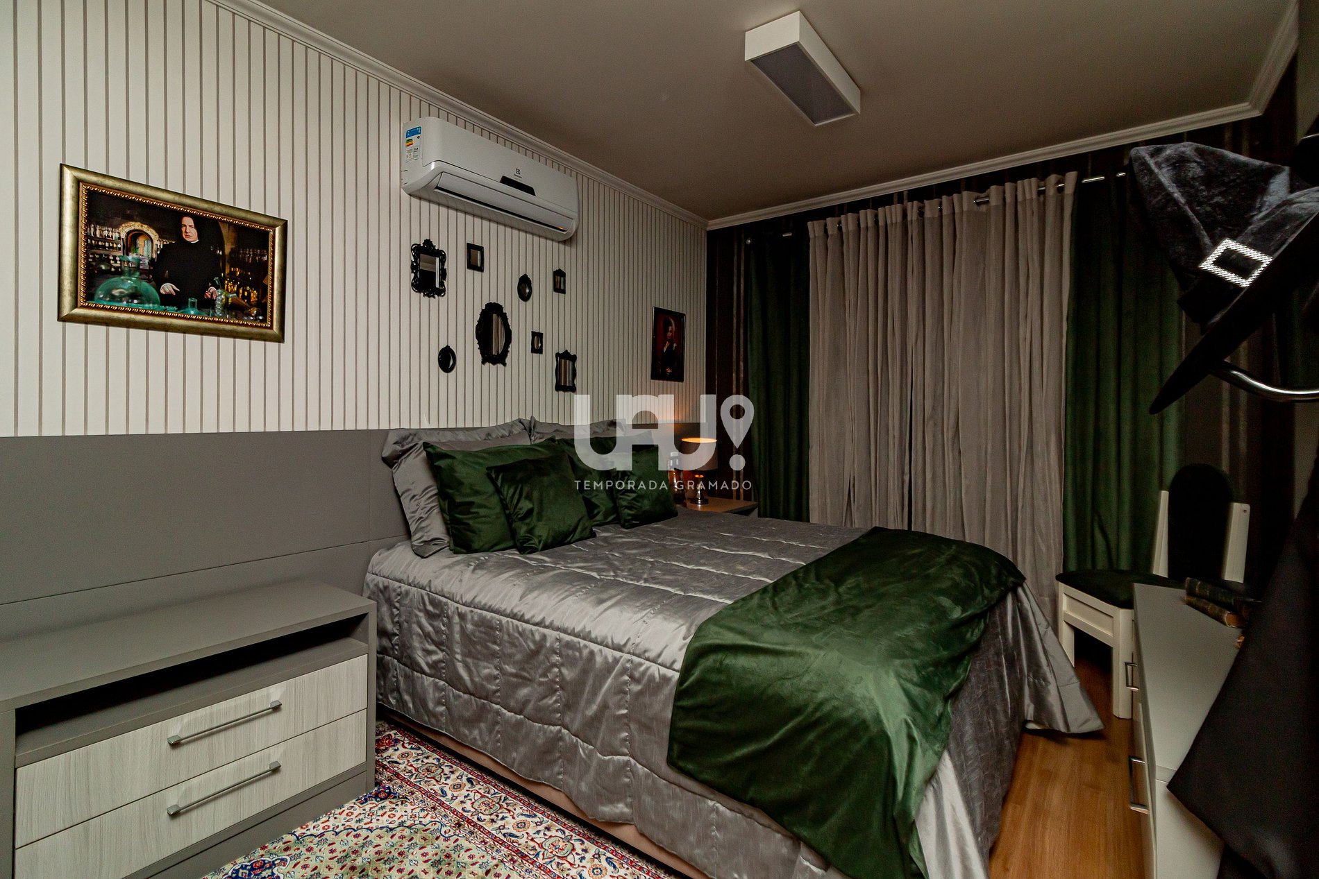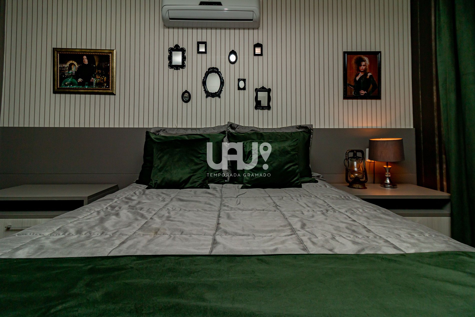 Decorado na temática e atmosfera mágica do mundo bruxo, ideal também para trouxas, após verificar a qual casa você pertence com o chapéu seletor, você poderá dormir na cama de casal da suíte Grifinória ou na cama Queen na suíte Sonserina, ambas as suítes possuem camas auxiliares caso sua família seja grande como a família Wesley.