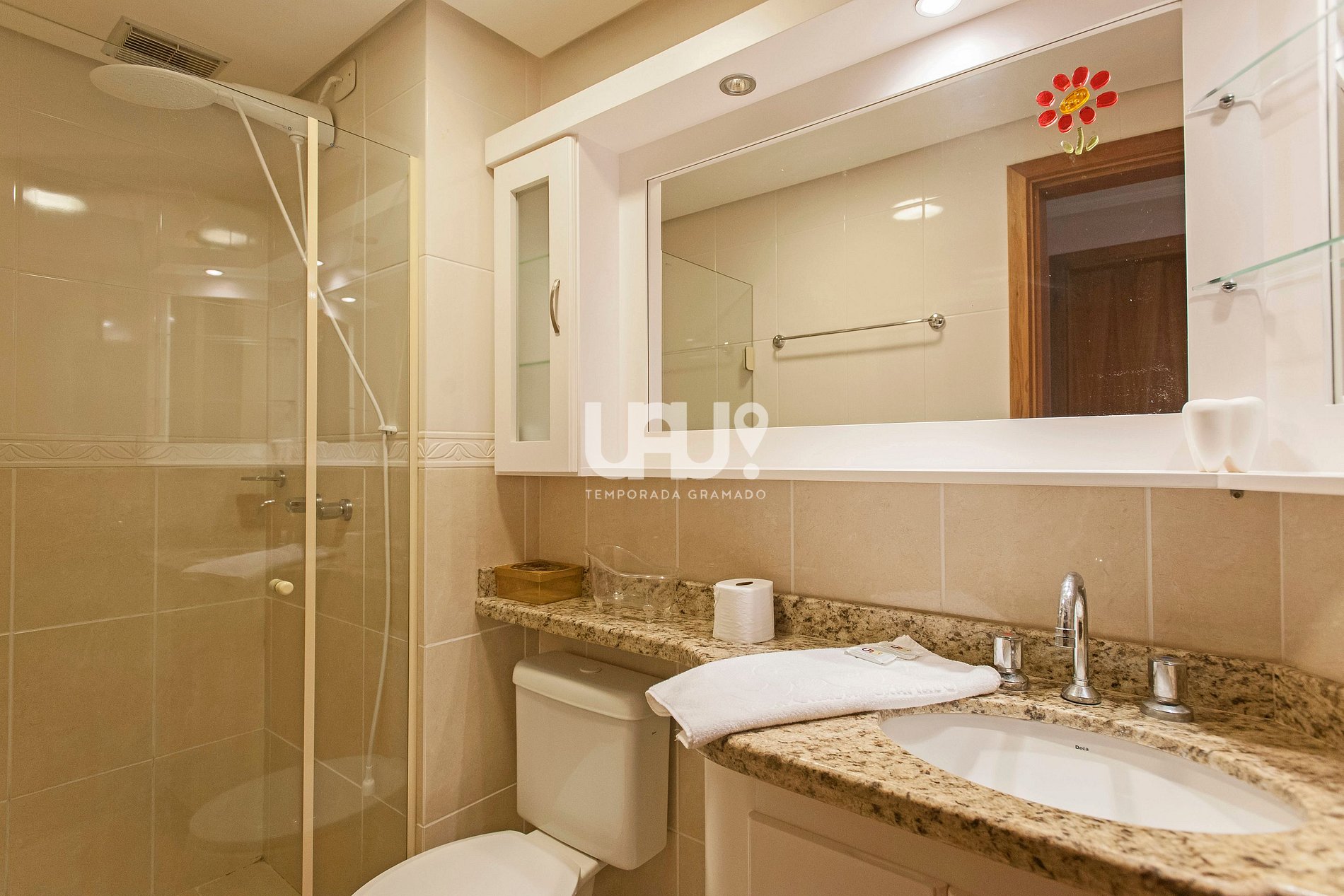Dormitório cama de casal, banho social e lavabo e ar condicionado split Q/F;