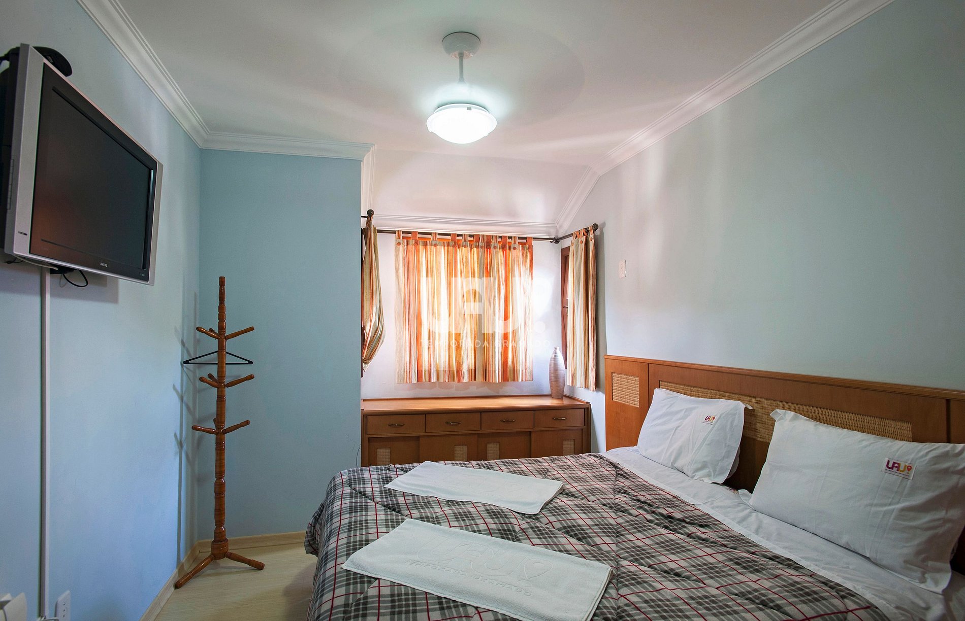 Suíte com cama Queen Size e 2 camas auxiliares, rouparia e TV e ar condicionado Split Q/F.