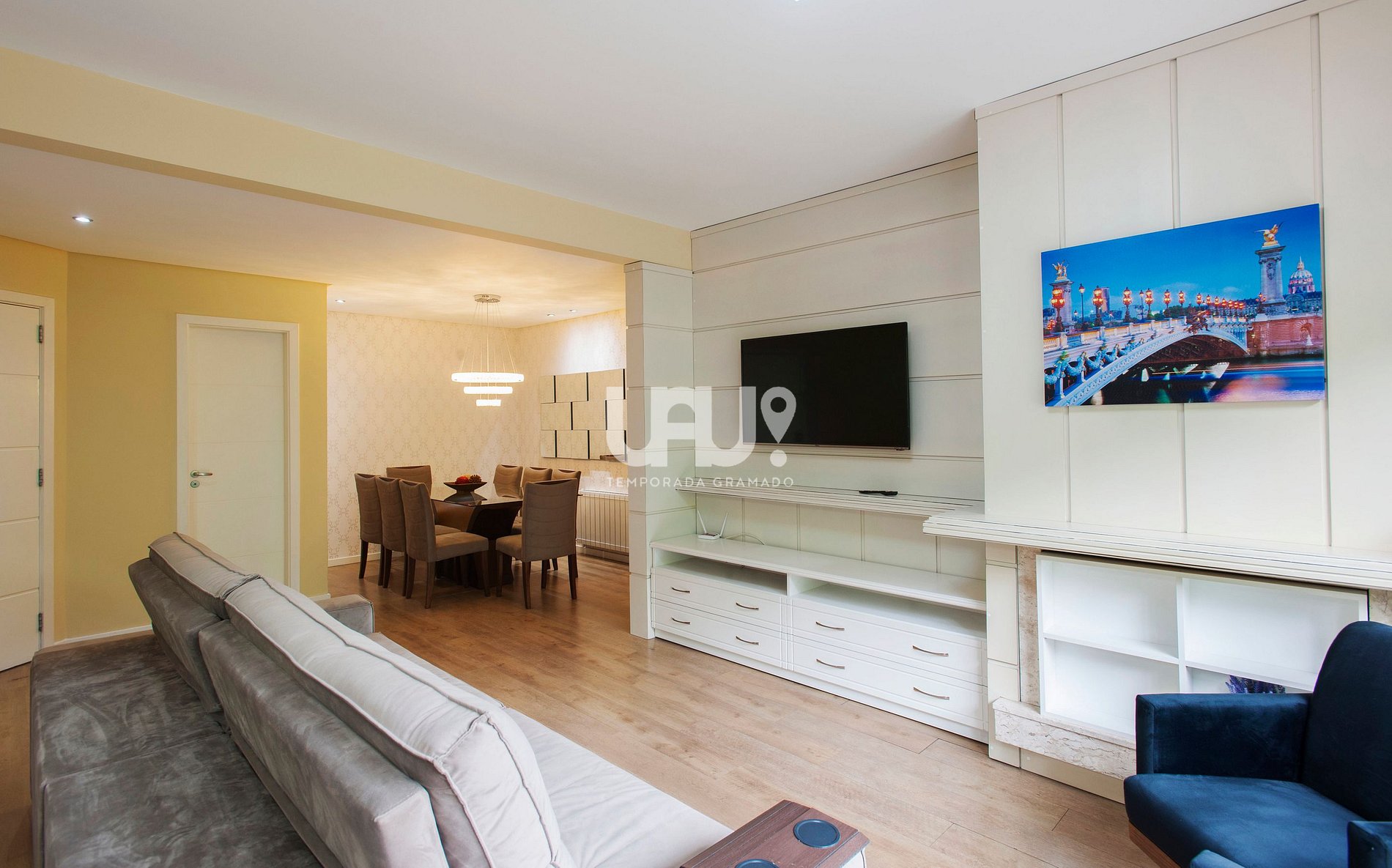 Apartamento com amplo Living em 3 ambientes, mesa de jantar para 8 pessoas, confortável sofá retrátil, poltronas, SmartTV e linda vista do centro da cidade; Cozinha totalmente equipada, com churrasqueira e eletrodomésticos; Área de serviço com máquina lava e seca; Lavabo;