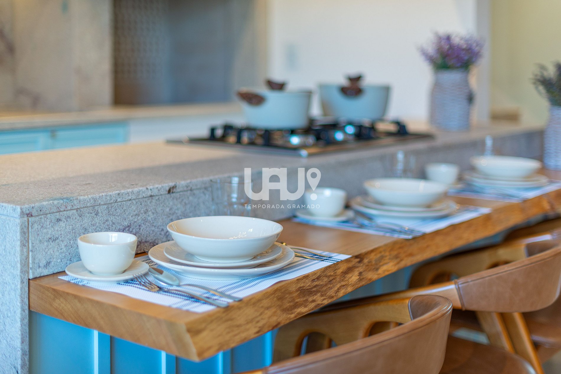 A cozinha é muito mais do que um espaço para cozinhar — é o ponto de encontro da convivência. Totalmente integrada ao living e à sala de jantar, ela permite que todos fiquem juntos: quem prepara a refeição, quem conversa, quem ri, quem brinda...
