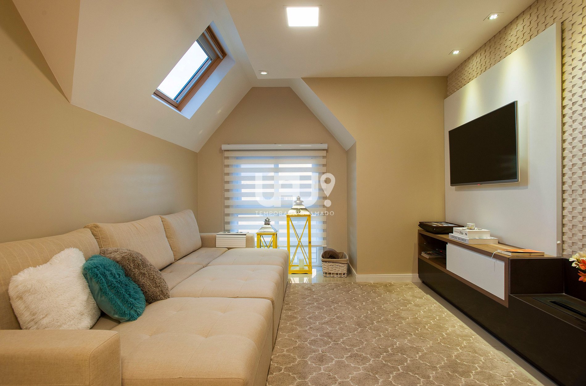 Sala de estar/TV com amplo sofá retrátil;