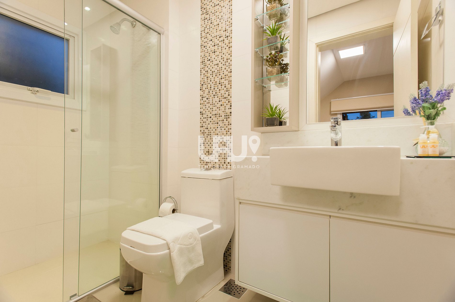 Suíte com cama Queen Size, rouparia completa e Split Q/F;