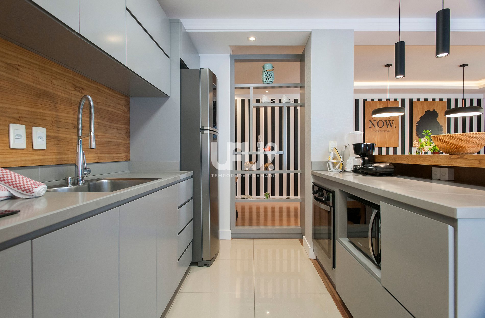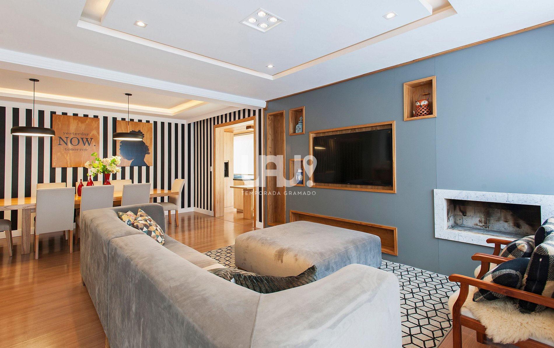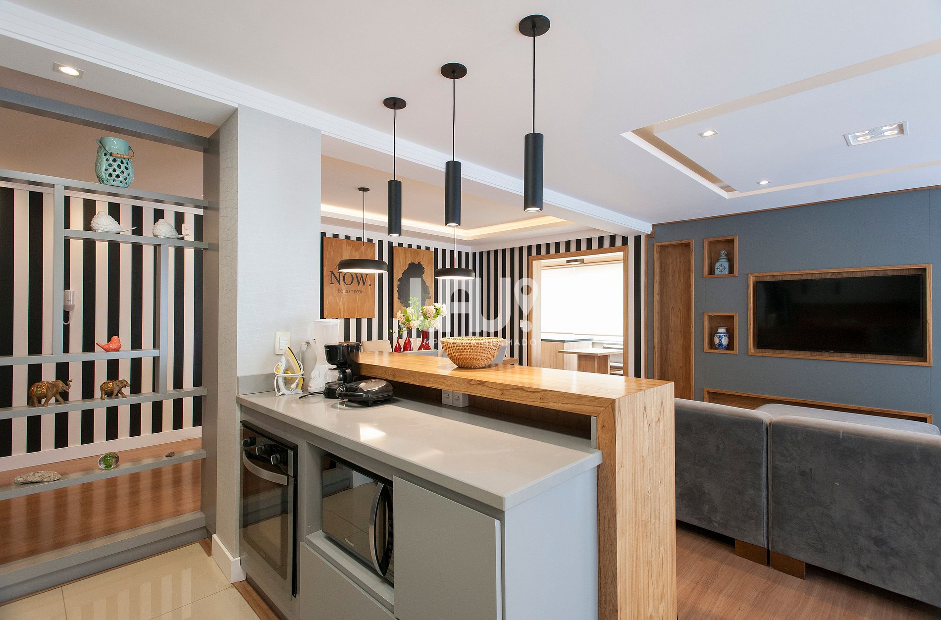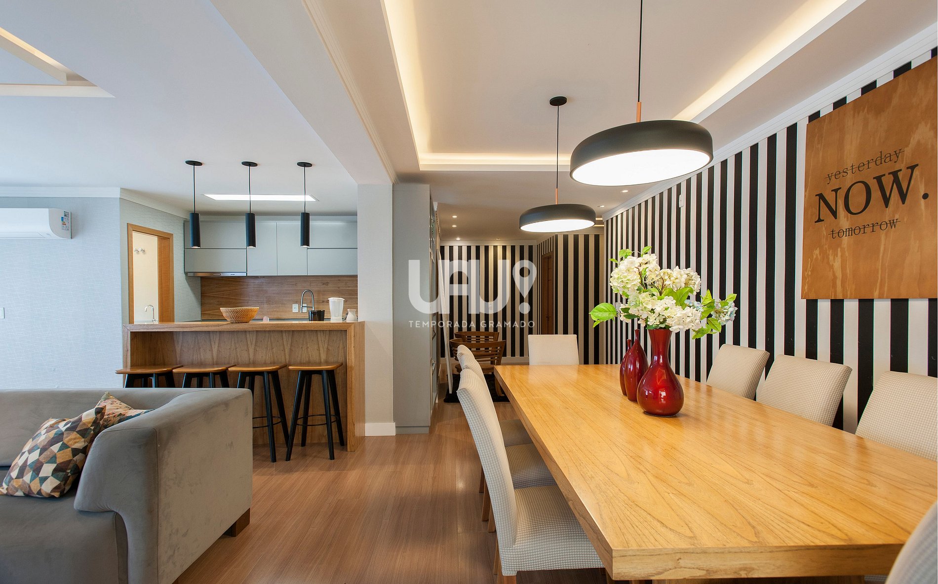Amplo living em 3 ambientes, sacada com churrasqueira, cozinha completa, lavanderia com máquina lava e seca, lavabo e três amplas suítes, uma com sacada.