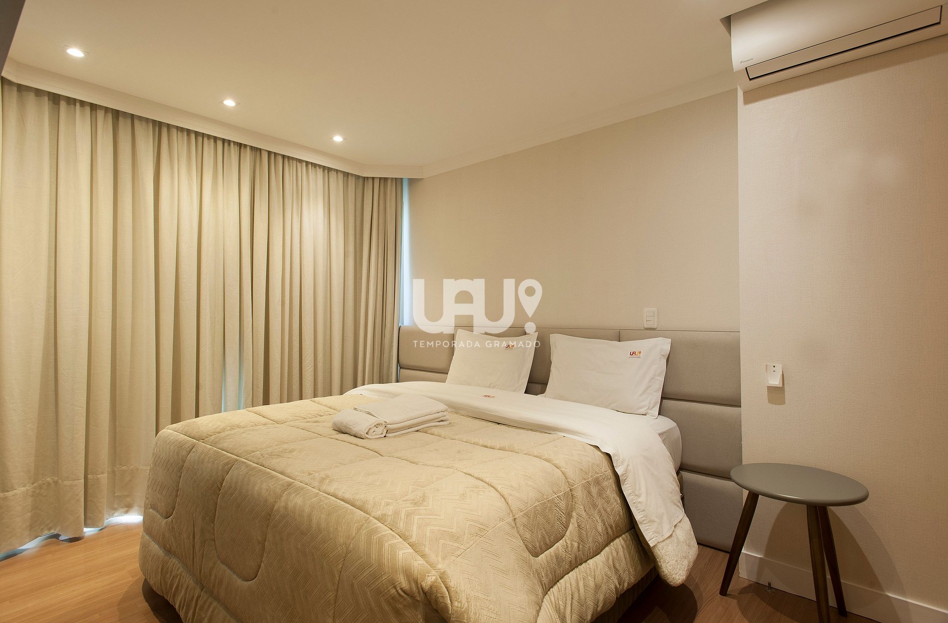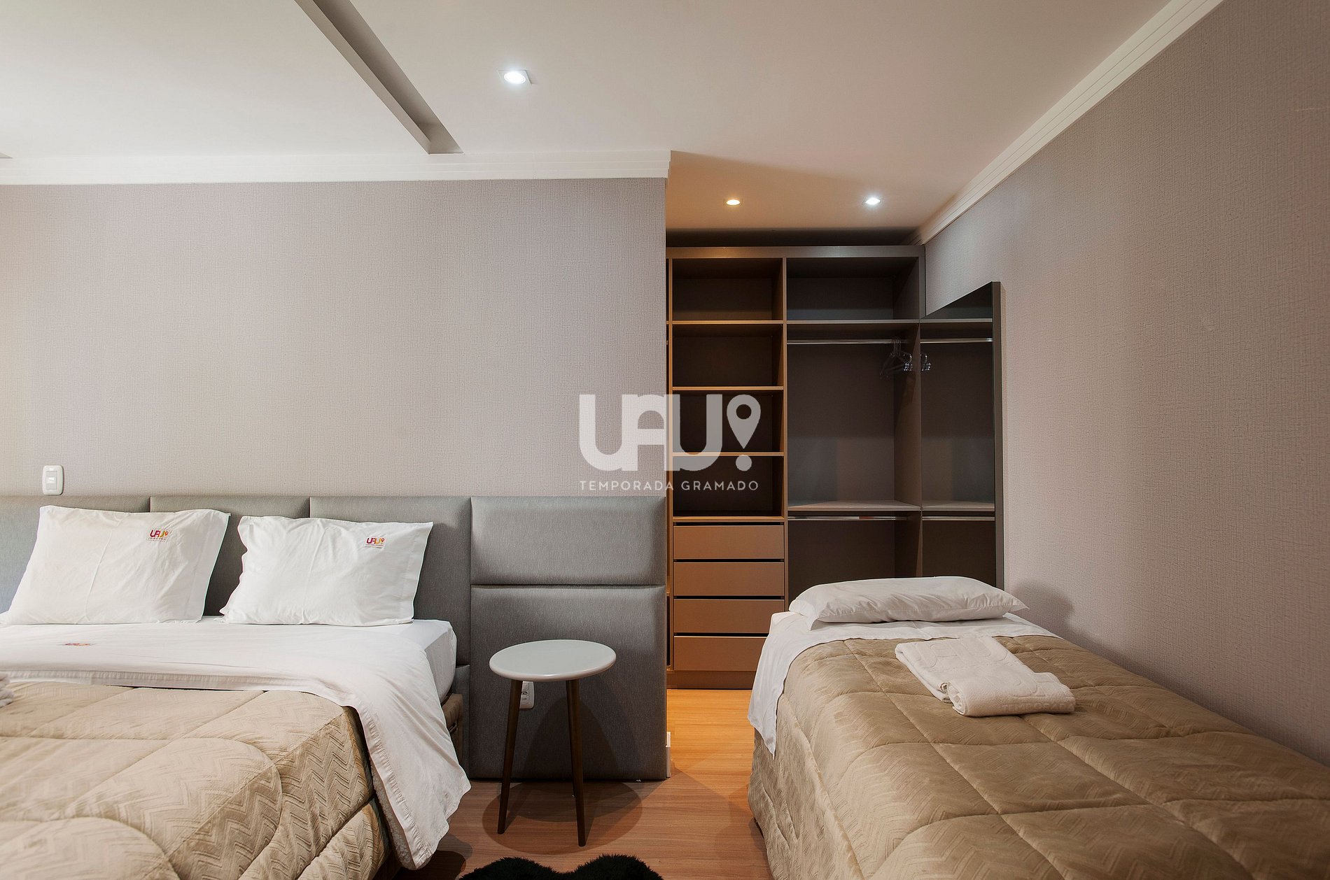 Duas suítes dispõe de camas 1,76X1,98m, com camas auxiliares com elevação;