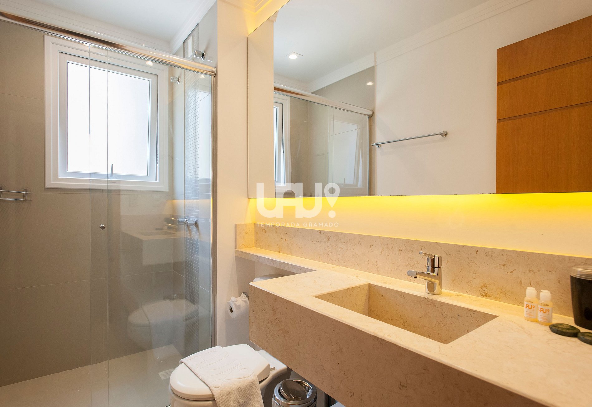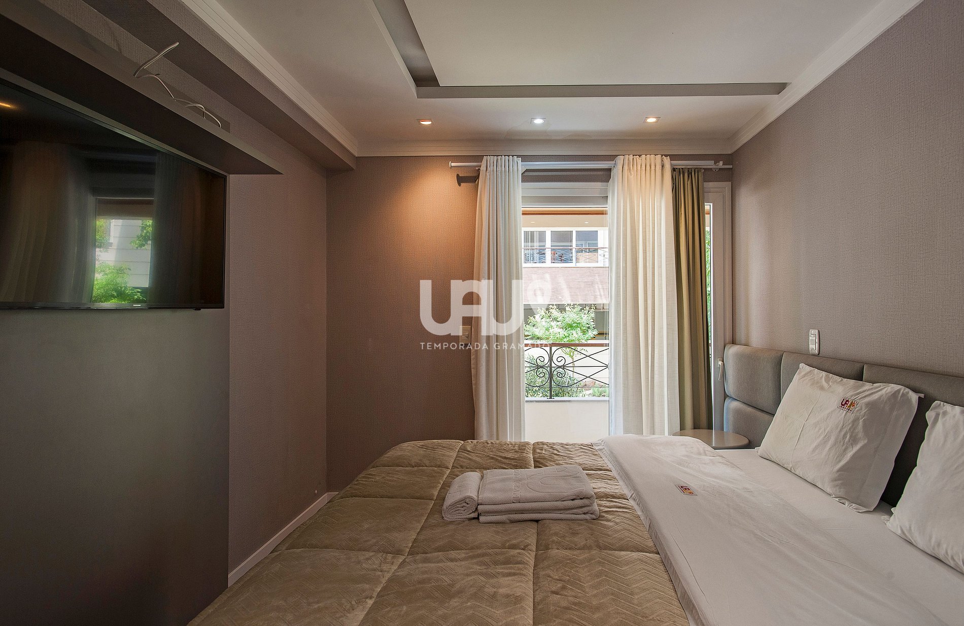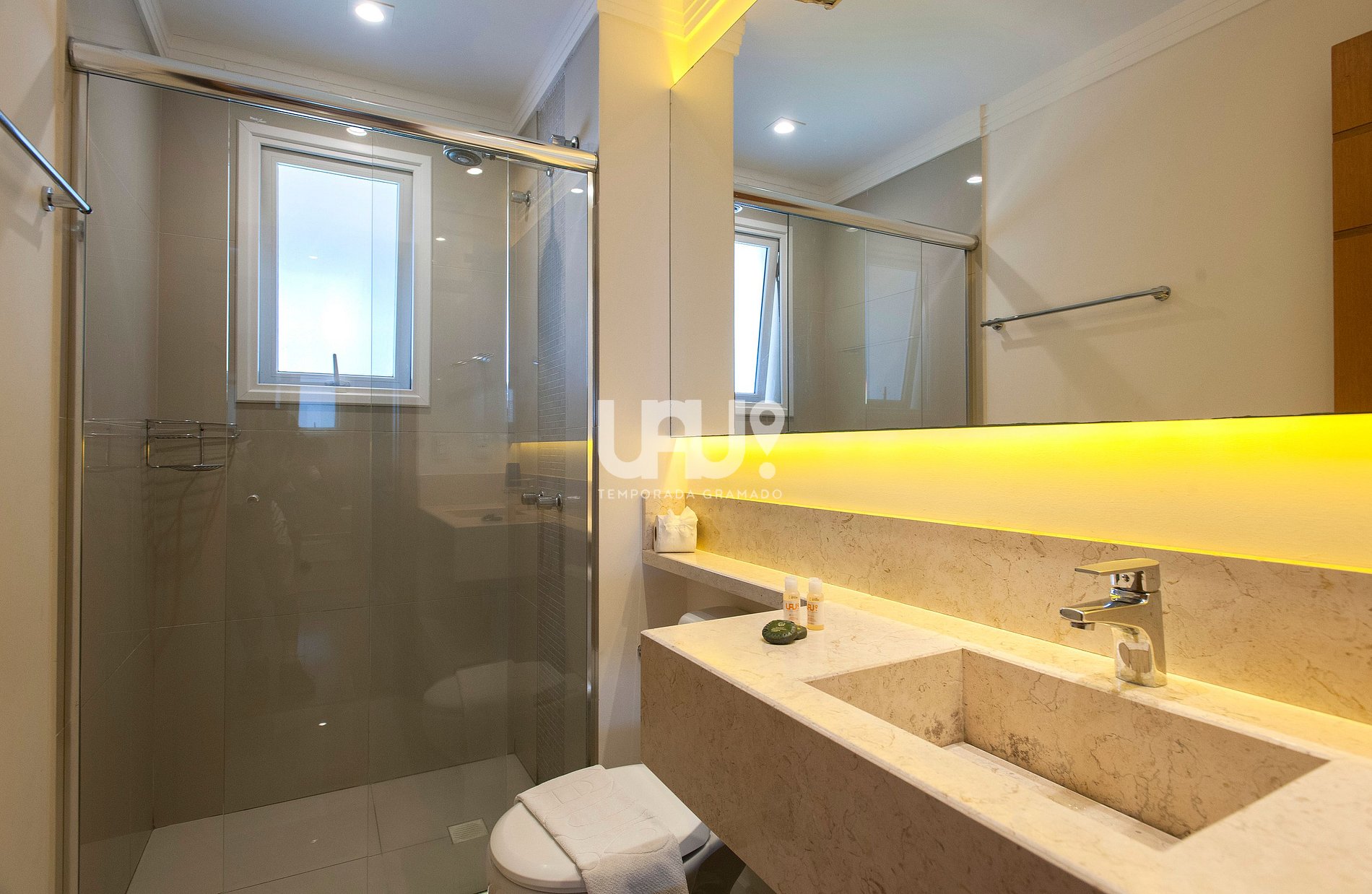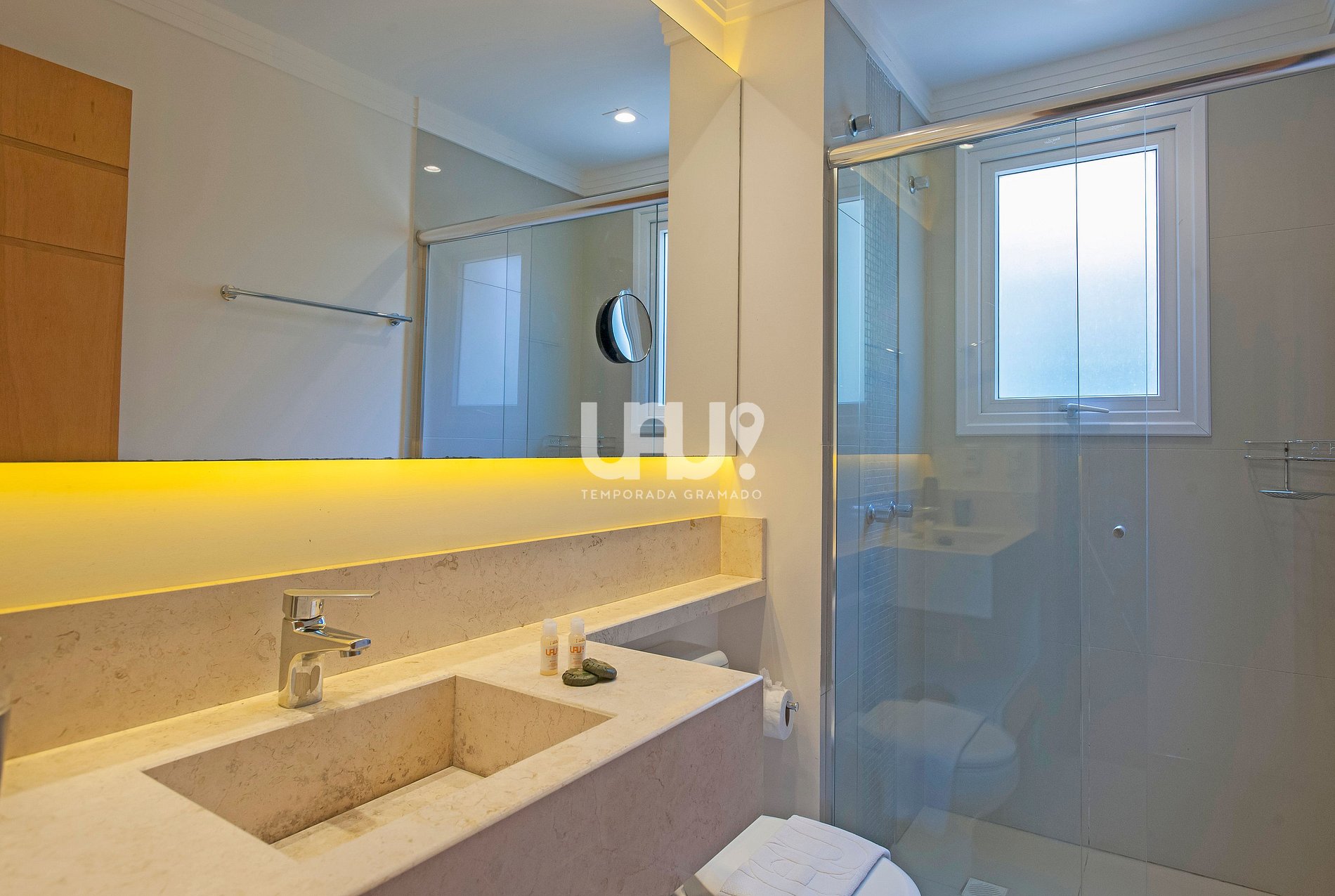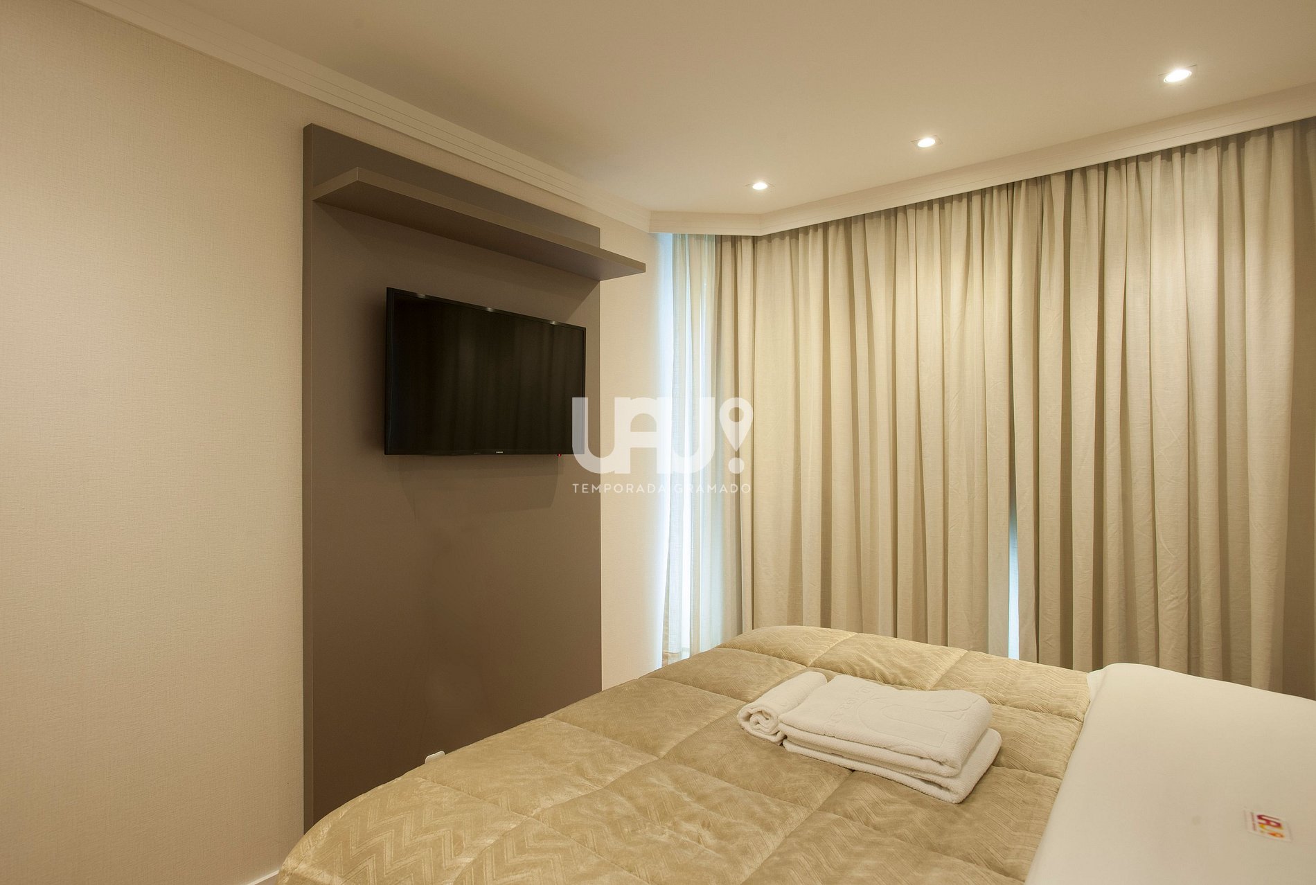 Split q/f e SmartTVs 50‘ com canais abertos em todas as suítes;