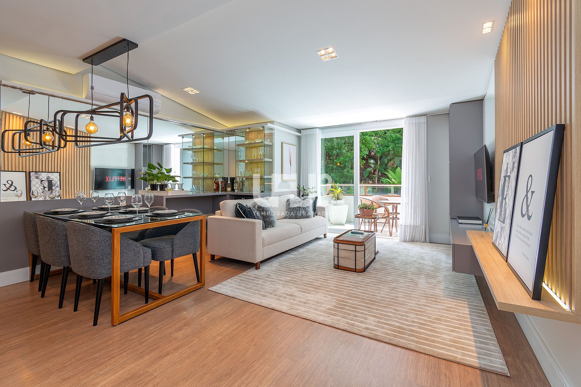 Living decorado com sofisticação, climatização para inverno e verão, sacada com vista...