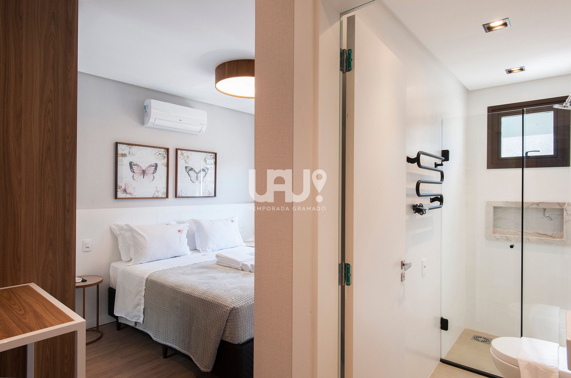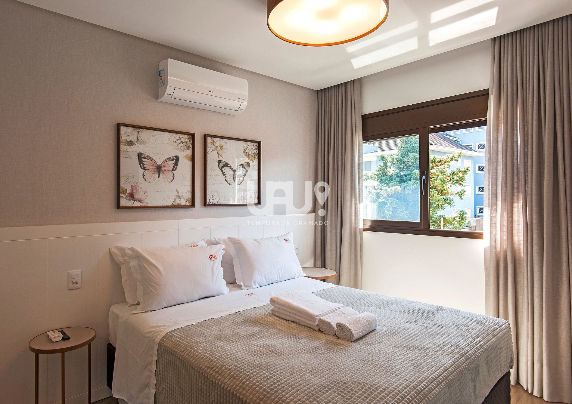 Suíte com cama Queen Size, cama auxiliar, split q/f, rouparia completa e SmartTV 50' e secador de toalhas elétrico;