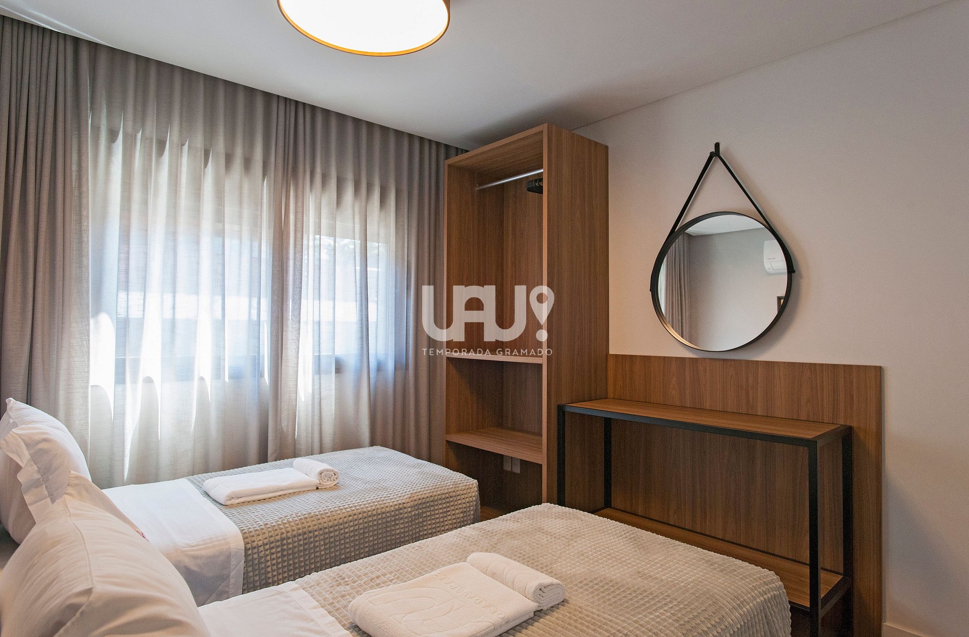 Suíte com 2 camas de solteiro (que, unidas, formam outra, tamanho Queen Size), cama auxiliar, rouparia completa e secador de toalhas elétrico;