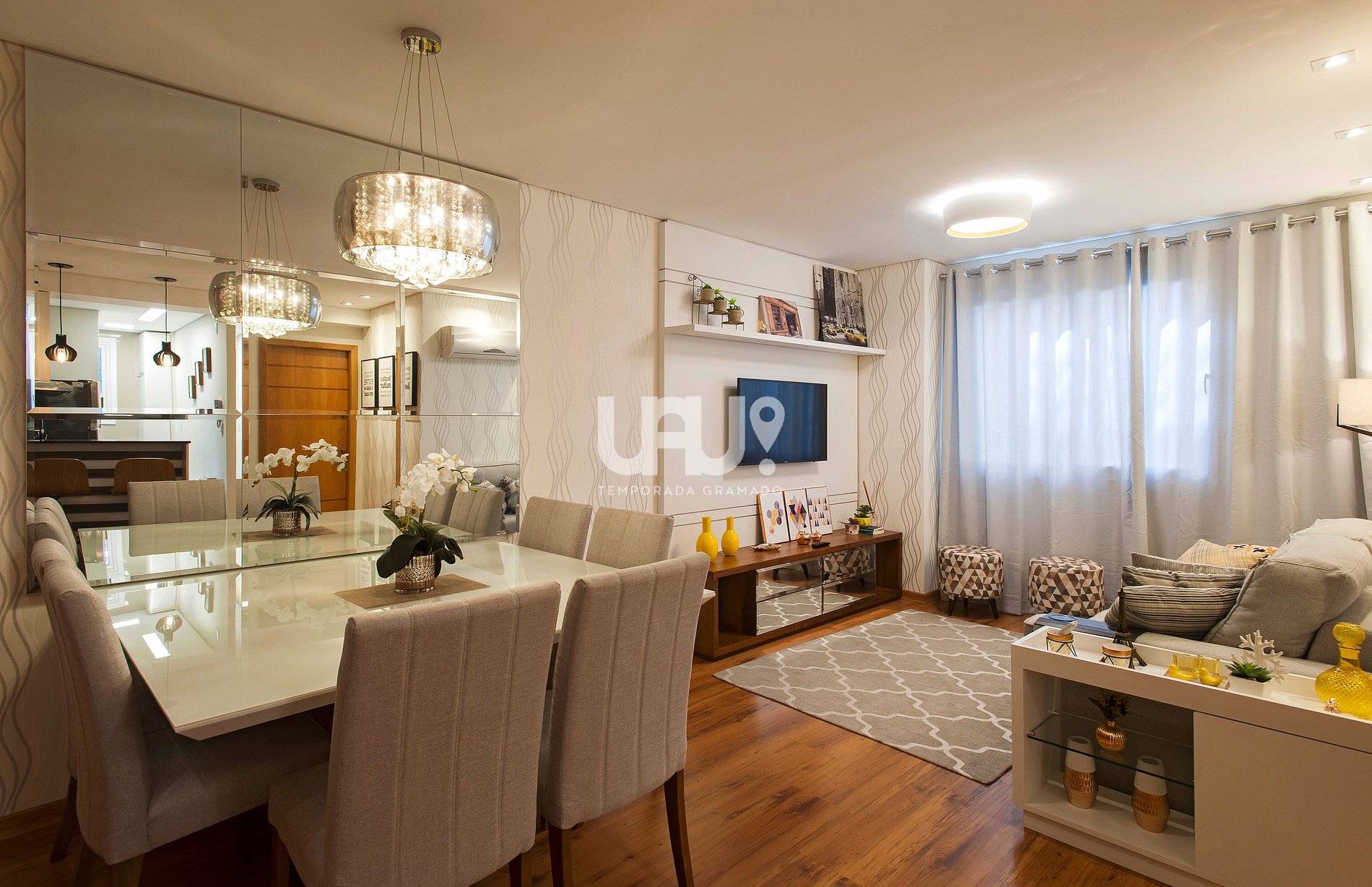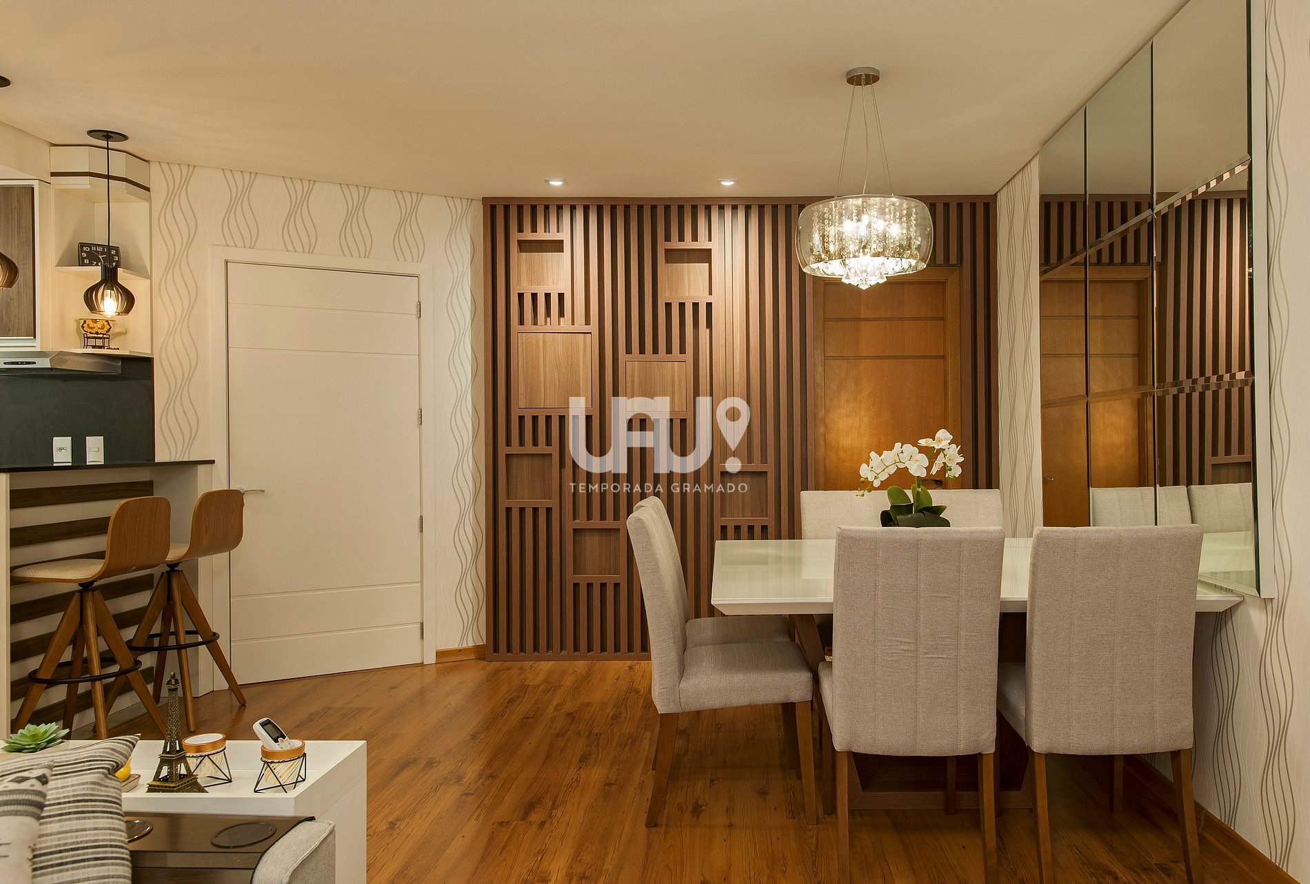 Living em 2 ambientes com confortável sofá cama, mesa de jantar com 6 cadeiras e finíssima decoração;