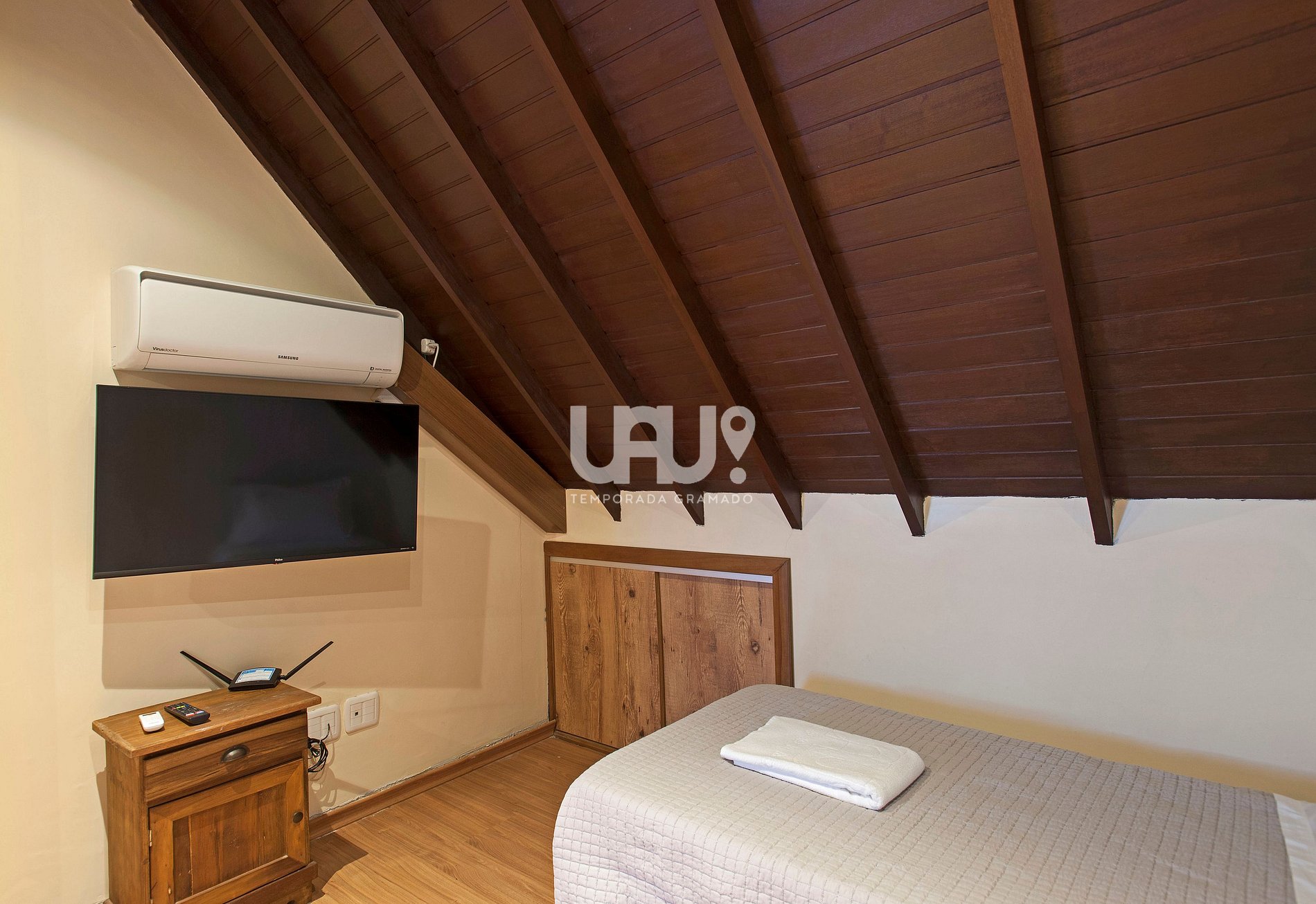 Suíte com cama Queen Size, cama auxiliar, SmartTV 43', closet, split quente e frio e banho privativo completo (segundo pavimento);