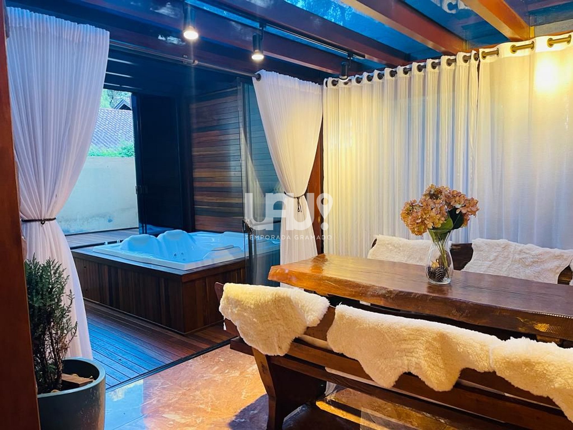 Casa Triplex com requintada decoração, amplo living em 3 ambientes, pátio privativo, cozinha totalmente equipada, com churrasqueira, lavanderia com máquina lava e seca, lavabo, jacuzzi na área externa para 04 pessoas e quatro dormitórios, assim distribuídos: