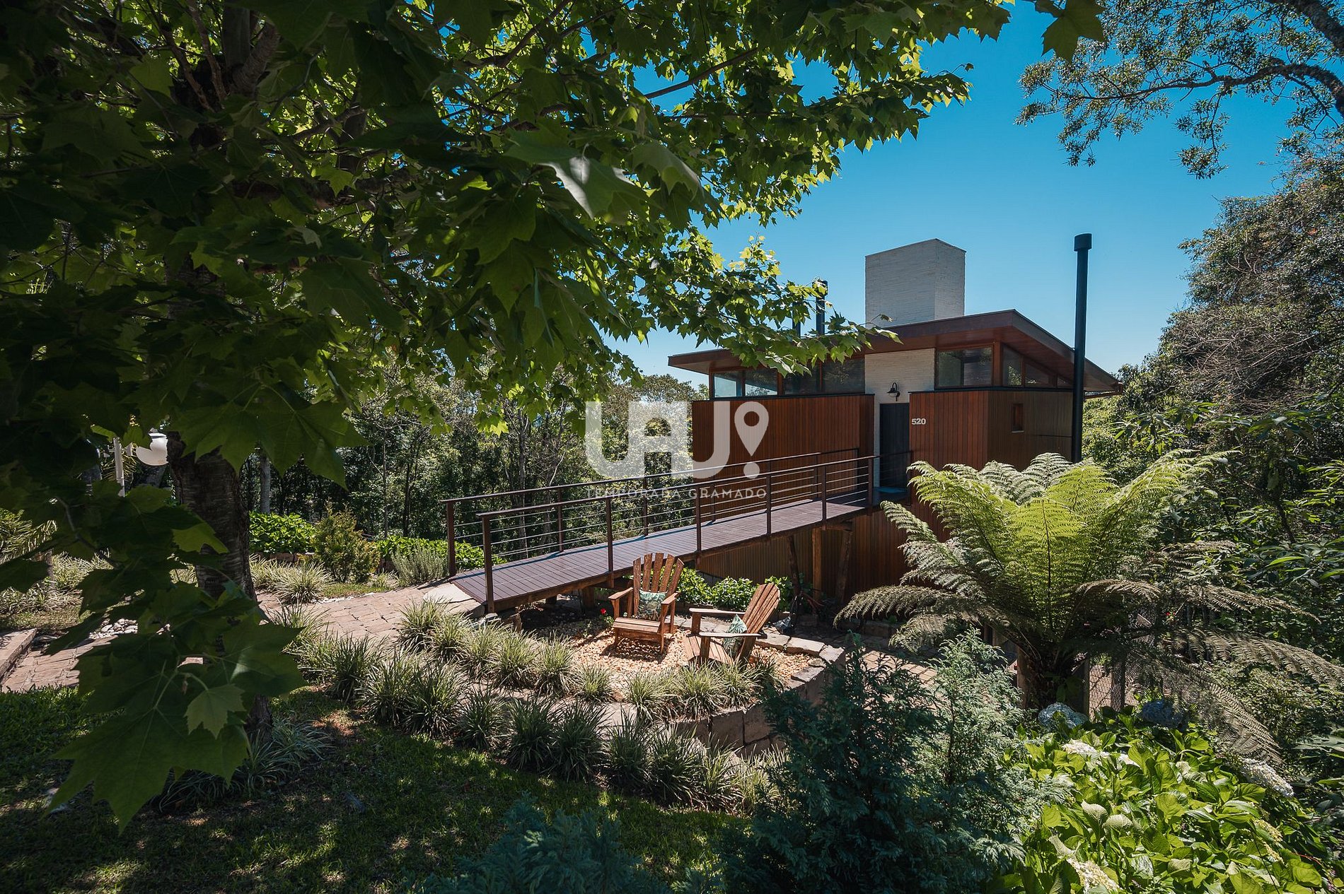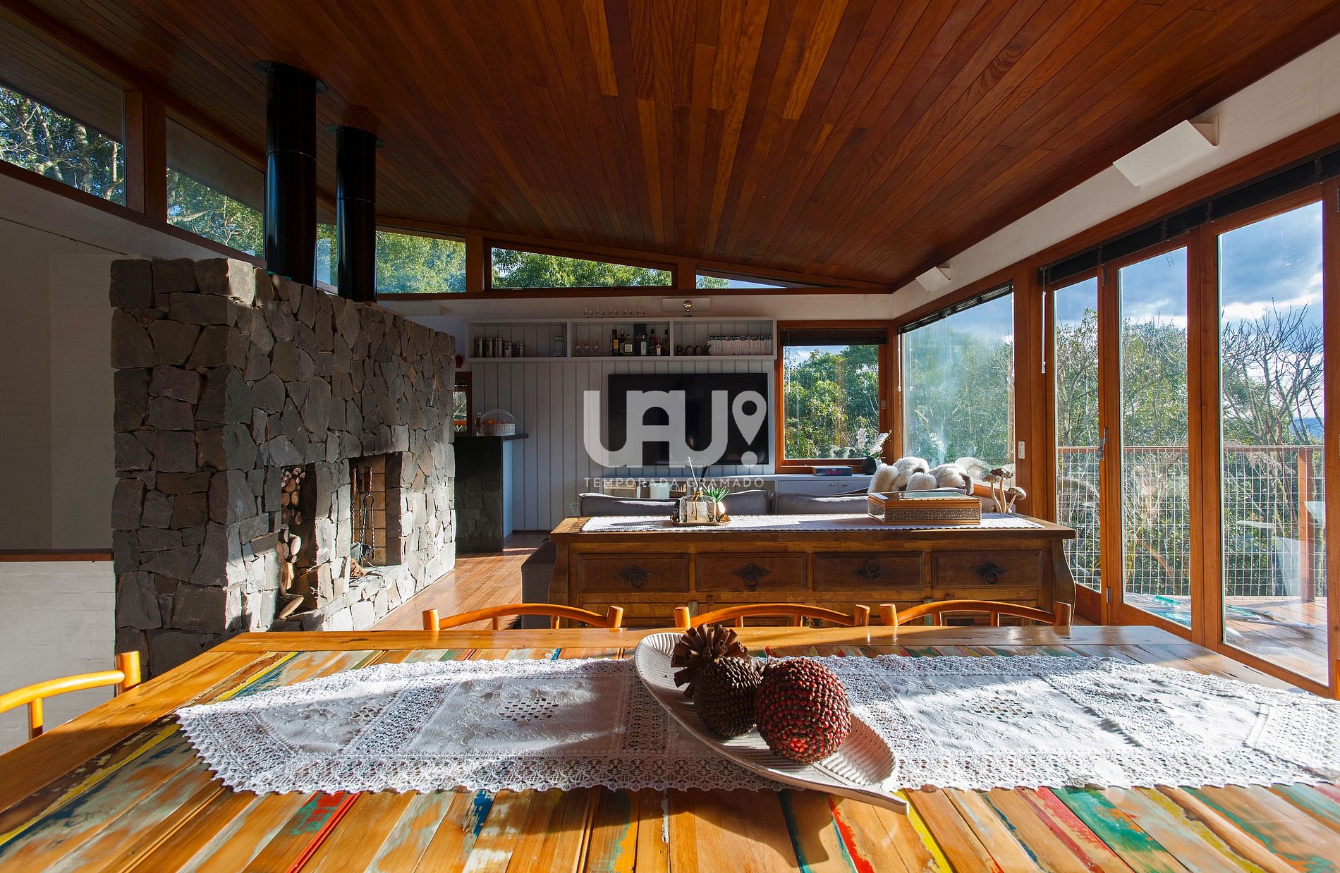Sala de estar com lareira, integrada ao deck com a mais incrível vista do por do sol da cidade e lavabo...