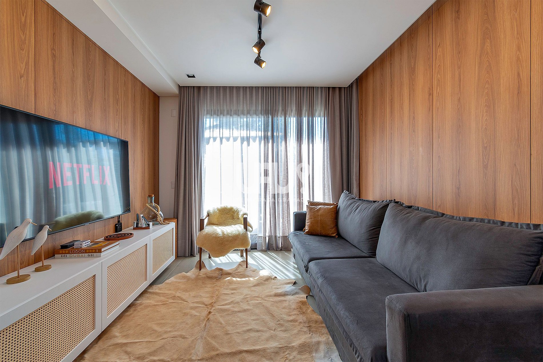 Sala de estar com confortável sofá cama tamanho casal, SmartTV 65', ar condicionado quente e frio;
