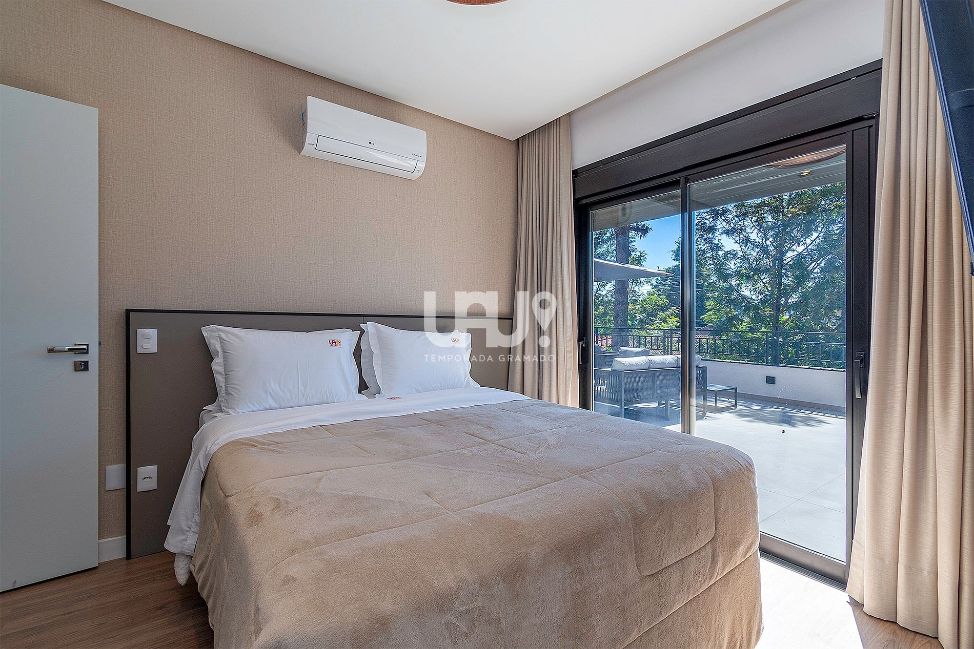 Suíte com cama tamanho casal, duas camas auxiliares, SmartTV 32', rouparia completa e ar condicionado quente e frio;