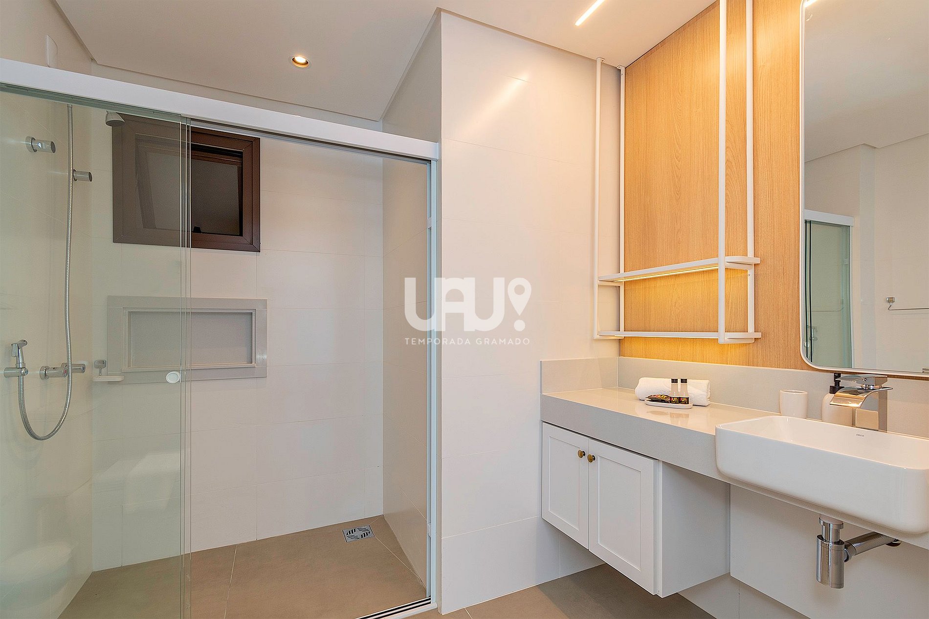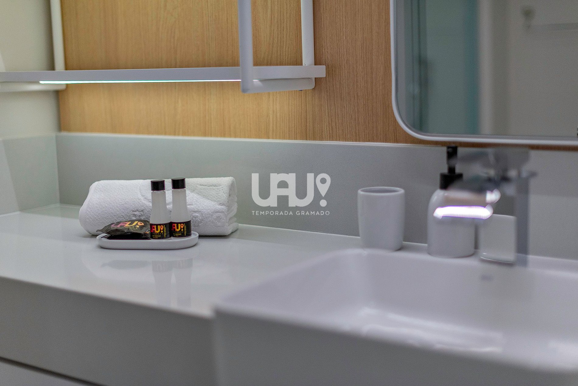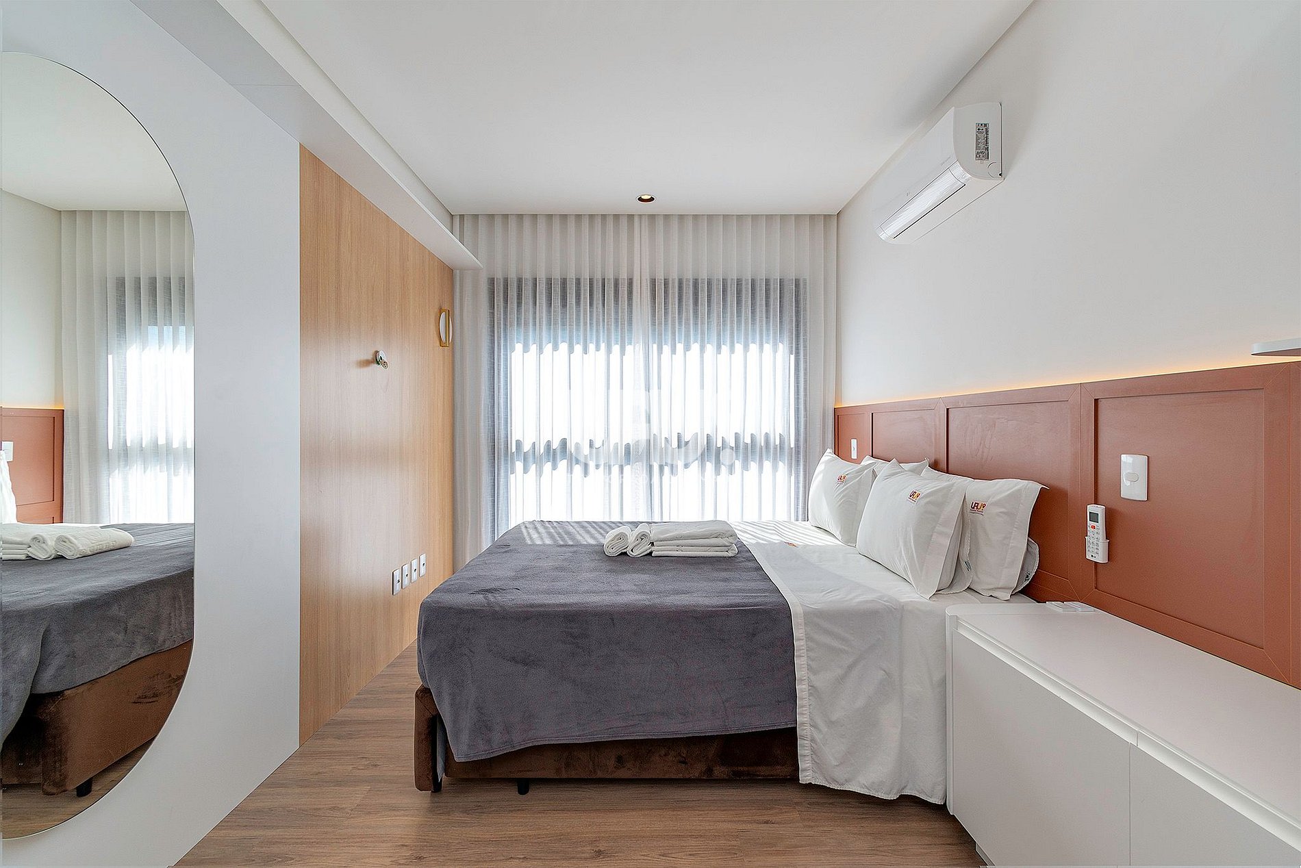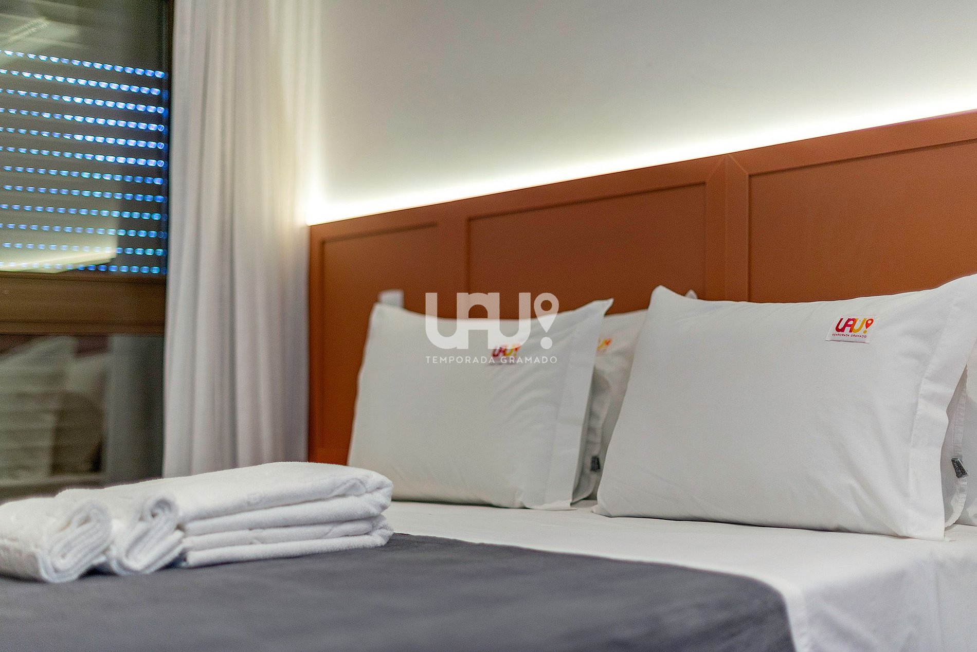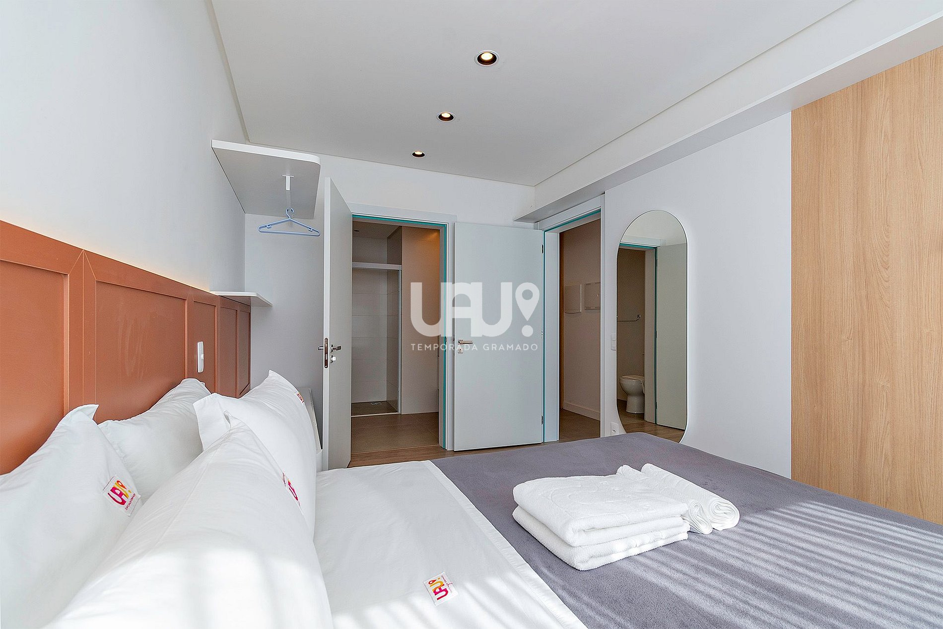 Suíte com cama Queen Size, cama auxiliar, split q/f, rouparia completa e secador de toalhas elétrico;