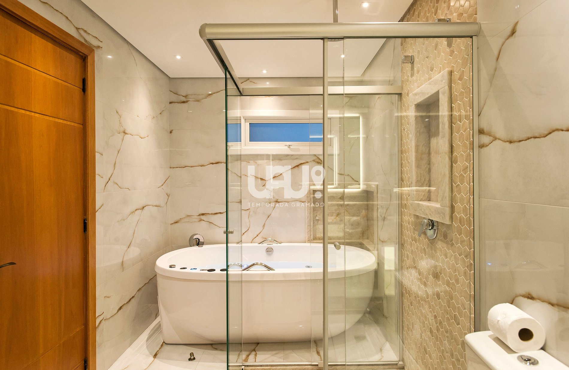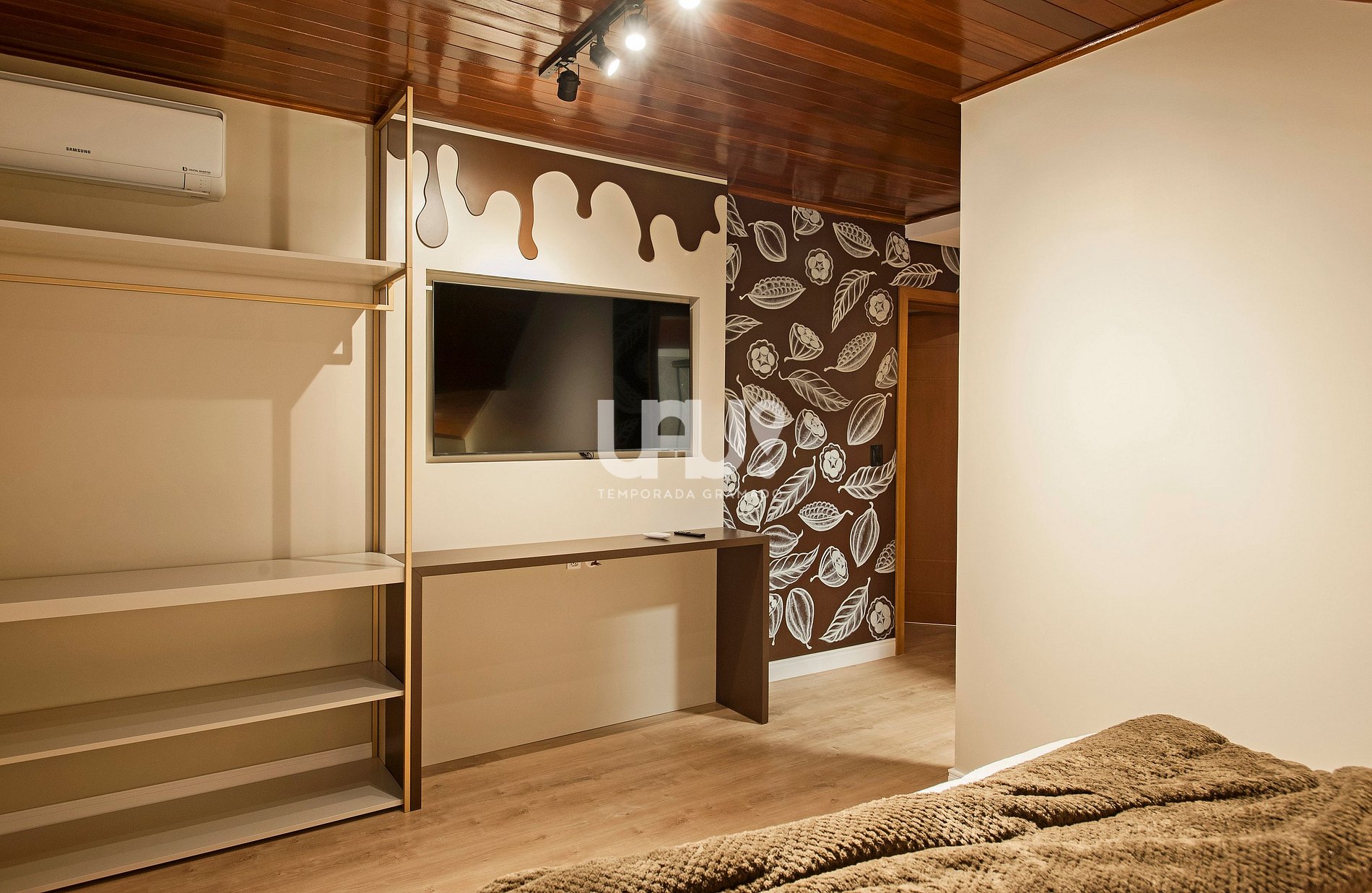 Cama King Size, (2) camas auxiliares, lareira elétrica, SmartTV 55', sala de esta onde é Natal o ano todo, closet e banheiro completo, com ducha e banheira hidromassagem para 2 pessoas...
