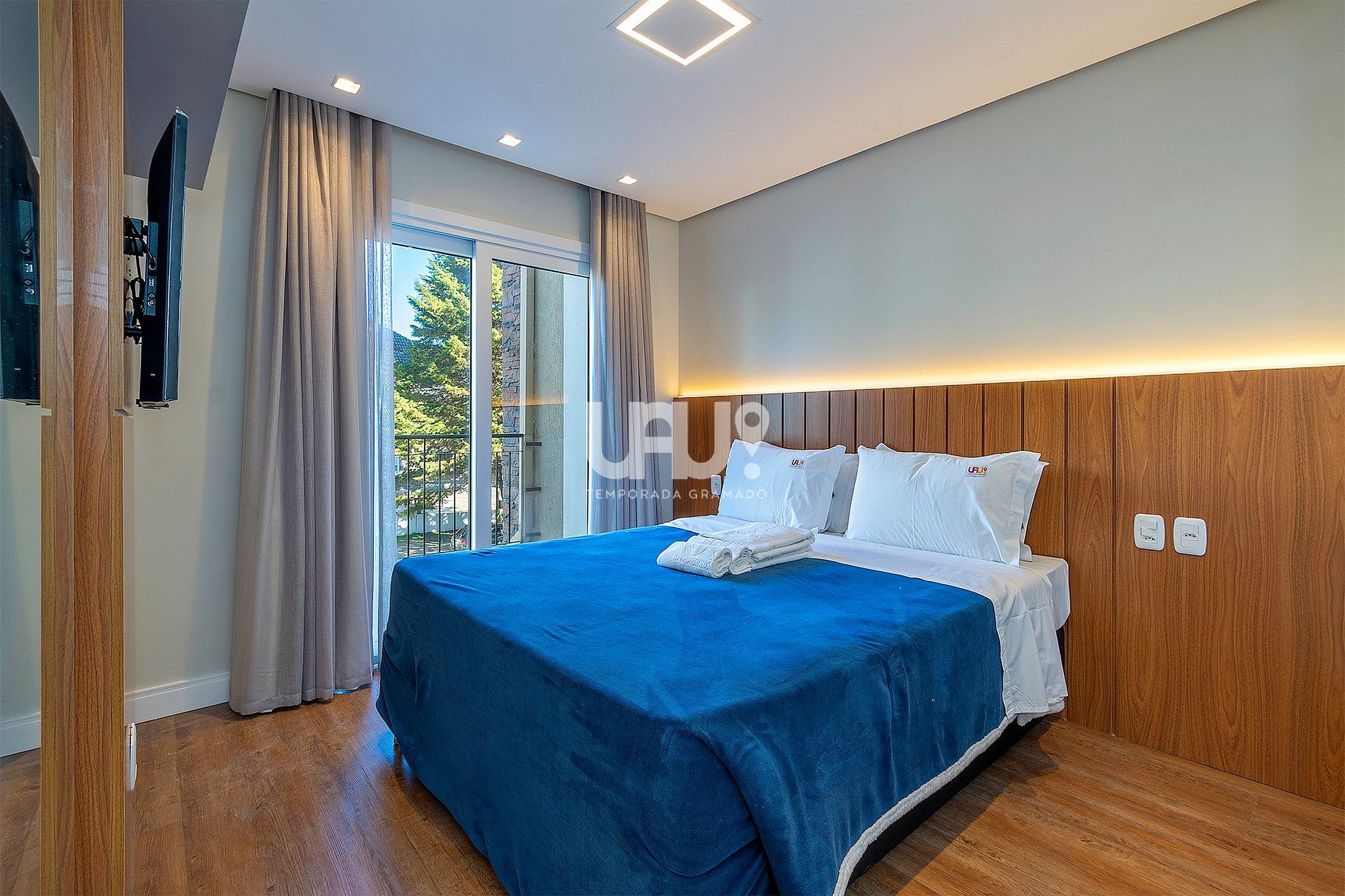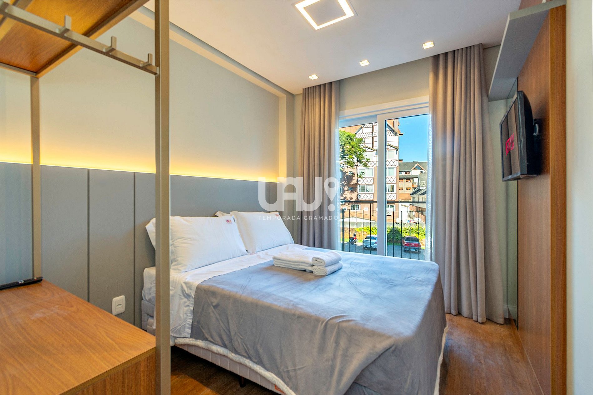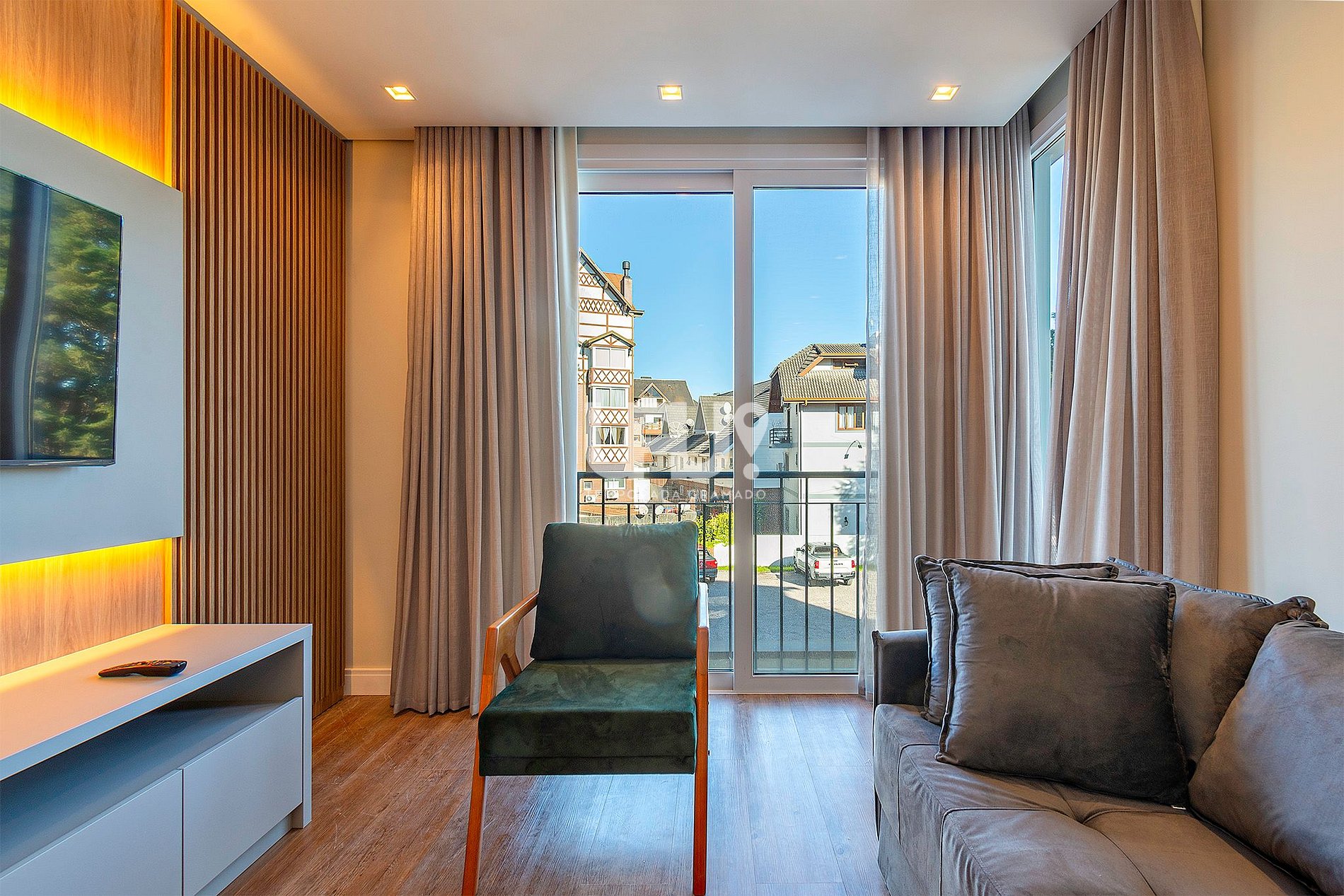Suíte com cama de casal, uma cama auxiliar, rouparia completa, split q/f e SmartTV; banho completo. Wi-fi 500 Mb; Garagem coberta; Enxoval completo; Consulte nossos pacotes exclusivos de serviços. Preparamos nosso espaço para que seus momentos aqui sejam únicos! Além da primorosa decoração e de todos os ítens de conforto, de nosso enxoval cuidadosamente tratado e de nossa calorosa recepção, esperamos que, aqui, você sinta o "afeto" com que desejamos recebê-lo! Permita-se viver o melhor de Gramado sem tirar seu carro da garagem. O Condomínio San Telmo está localizado na Rua São Pedro, 900, centro da cidade, junto a mercados, padarias, restaurantes e ao rico comércio de nossa bela cidade. Estamos te esperando para momentos únicos!
