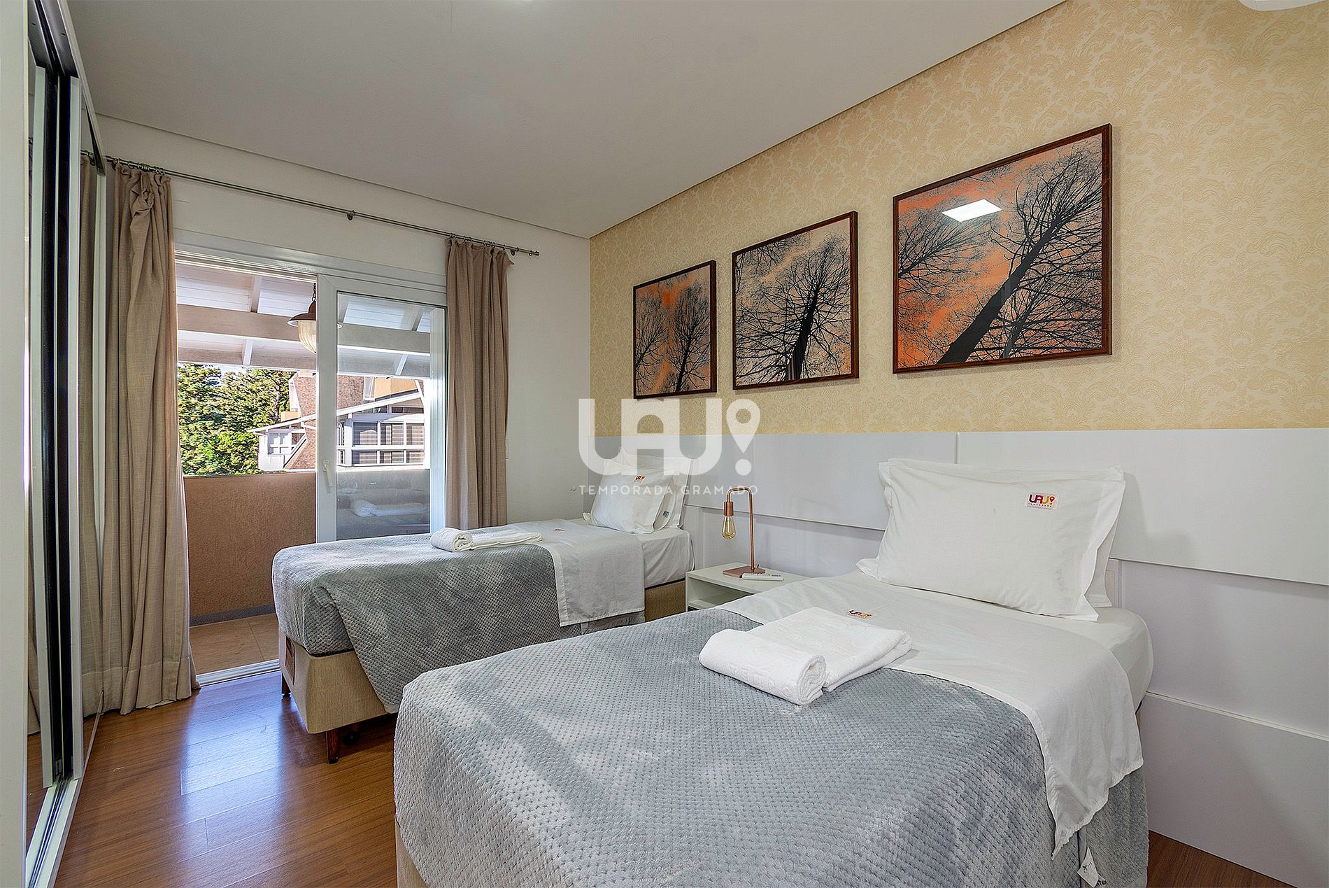 Duas amplas suítes com camas Queen e 2 camas auxiliares, Split Q/F e SmartTVs com Sky (uma com sacada com vista para a Aldeia do Papai Noel);