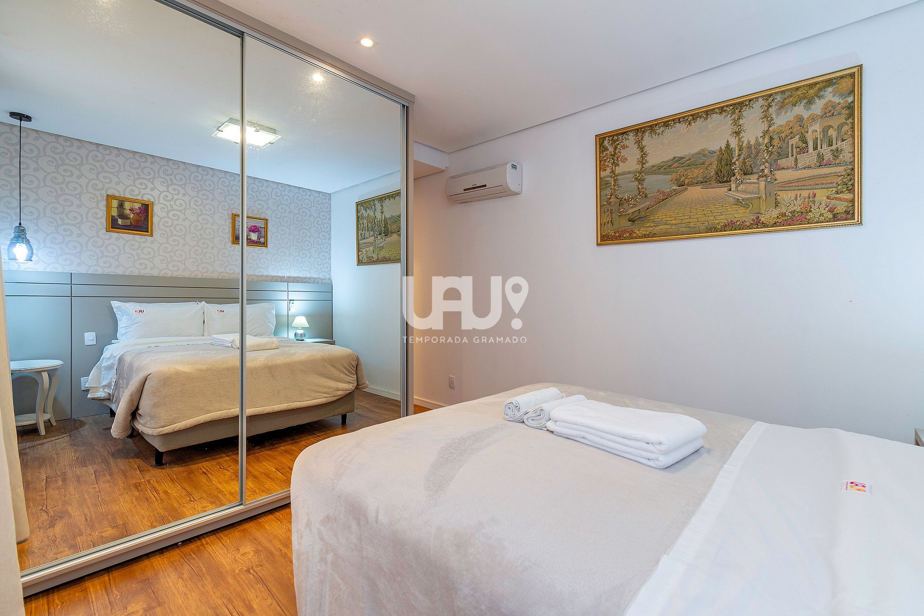 Suíte com cama de casal, cama auxiliar, split quente e frio e rouparia completa;