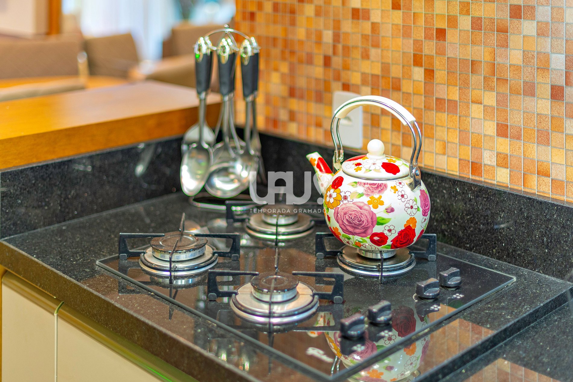 Nosso Apartamento dispõe de amplo living em dois ambientes com lareira ecológica e split quente e frio, SmartTV 50', salas de estar e jantar, integrado à cozinha, em estilo americano e à lavanderia, com máquina de lavar;