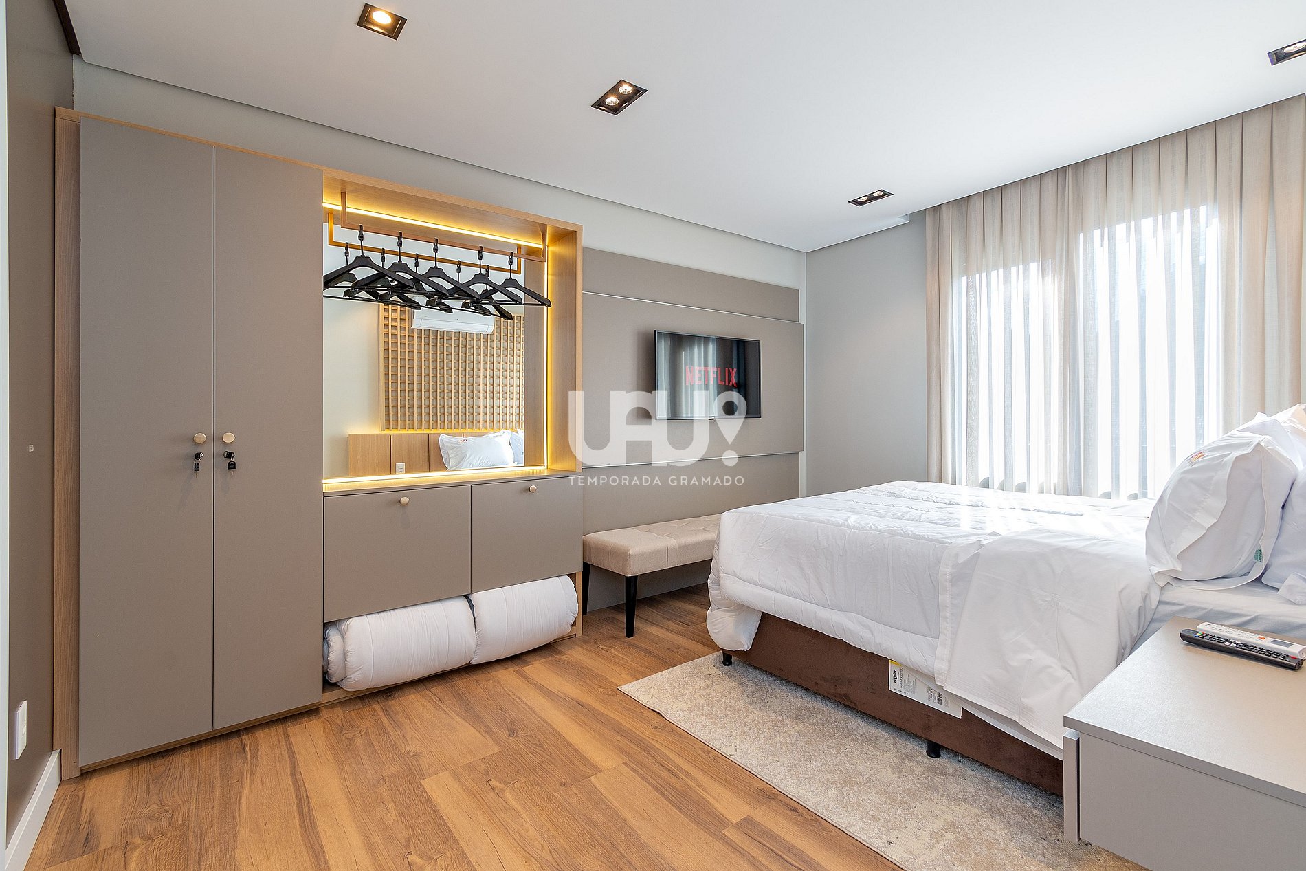 Suíte com cama Queen Size, duas camas auxiliares, SmartTV 50’ e split quente e frio;