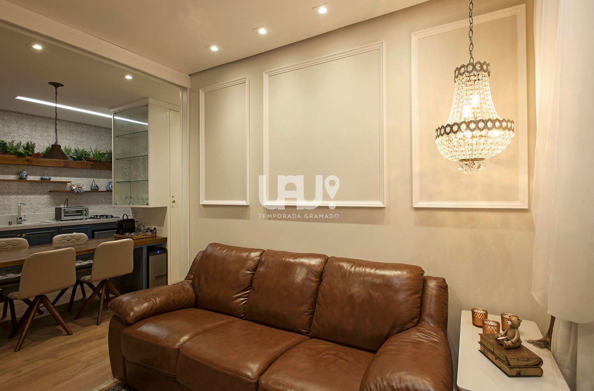 IMÓVEL ÚNICO EM GRAMADO!!! Living em 2 ambientes com sofá cama em couro e sacada com vista para o centro da cidade (com porta para máxima privacidade de quem ali dormir), SmartTV e Split Q/F; jantar com 4 cadeiras; cozinha em estilo americano totalmente equipada, dormitório com cama Queen Size, Split Q/F, rouparia e SmartTV, Banho completo; Garagem coberta; Wi-Fi, 33Mb.Não possui calefação .