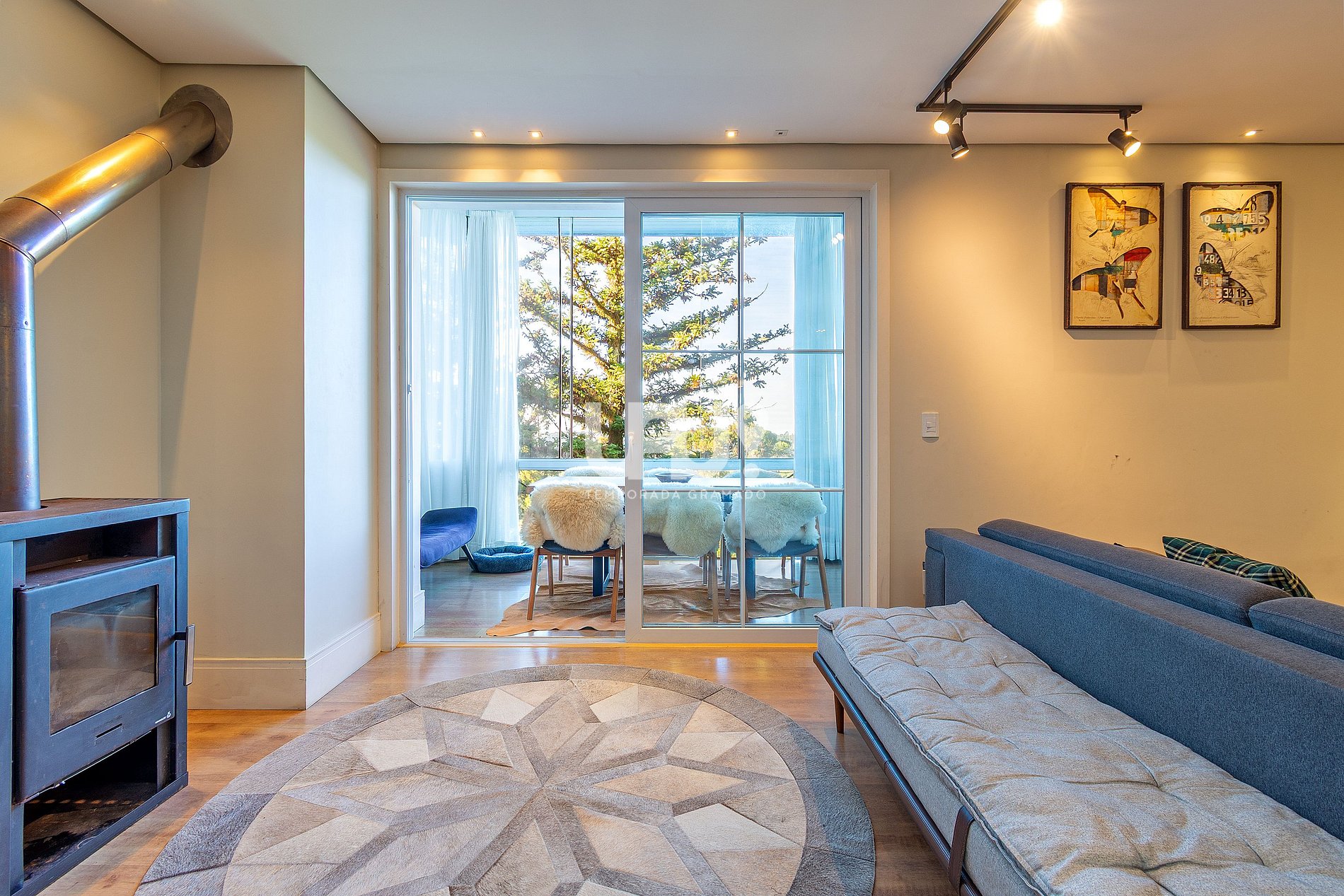Estufa à lenha, ar condicionado quente e frio e SmartTV de 55' complementam a decoração, oferecendo máximo conforto a todas/os;