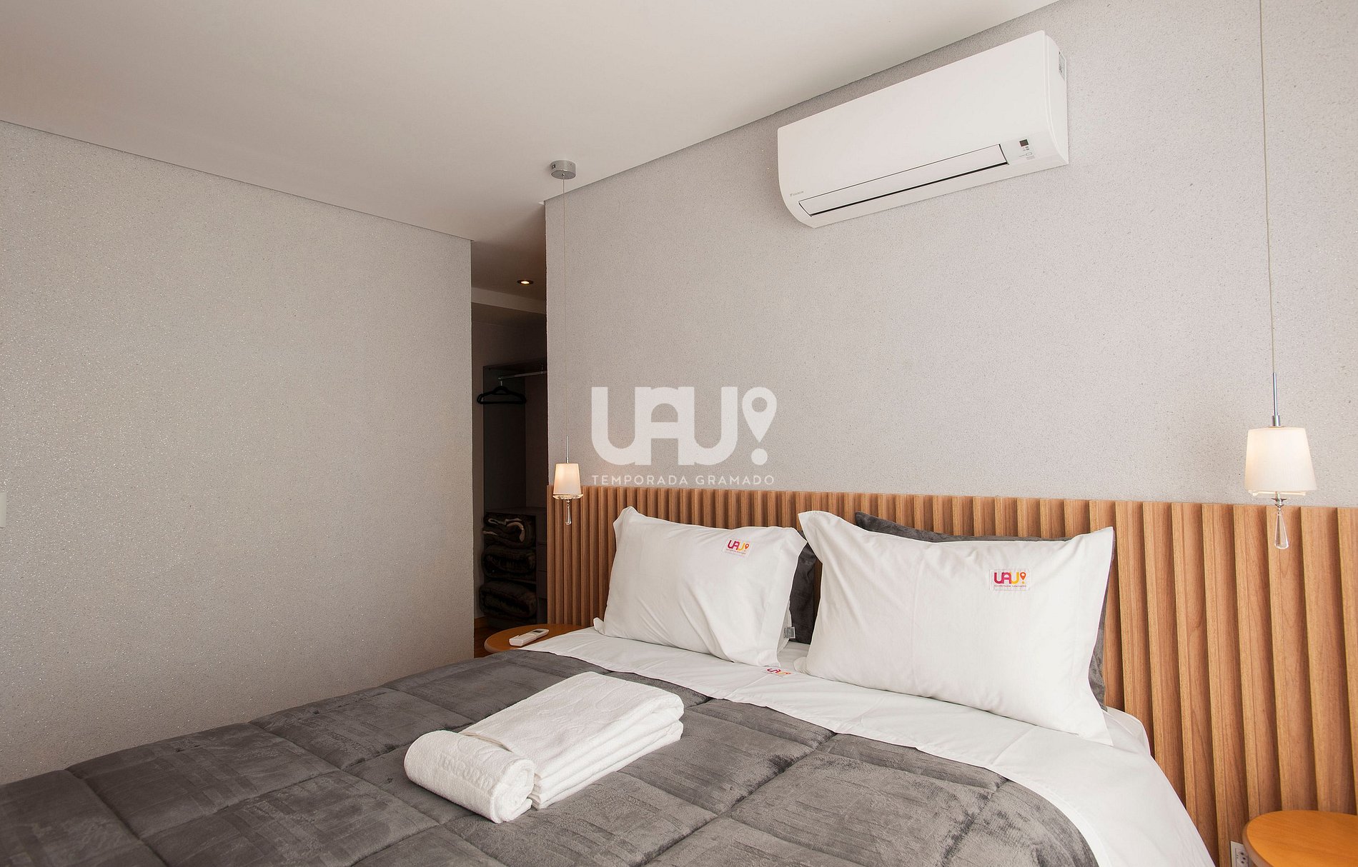 Suíte com cama Queen Size, duas camas auxiliares, split quente e frio e closet;