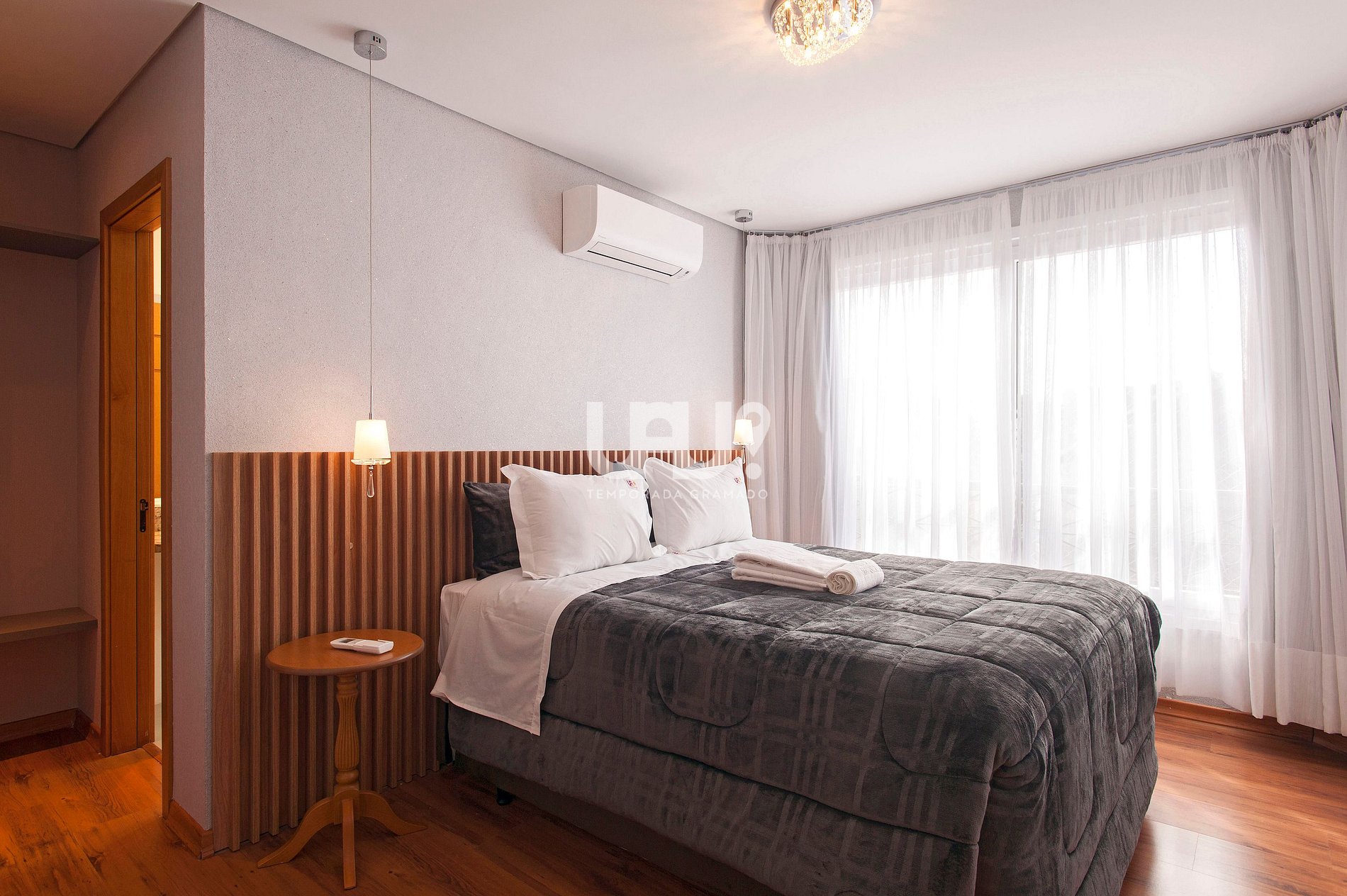 Suíte principal com cama King Size, duas camas auxiliares, SmartTV, split quente e frio, closet e sacada;