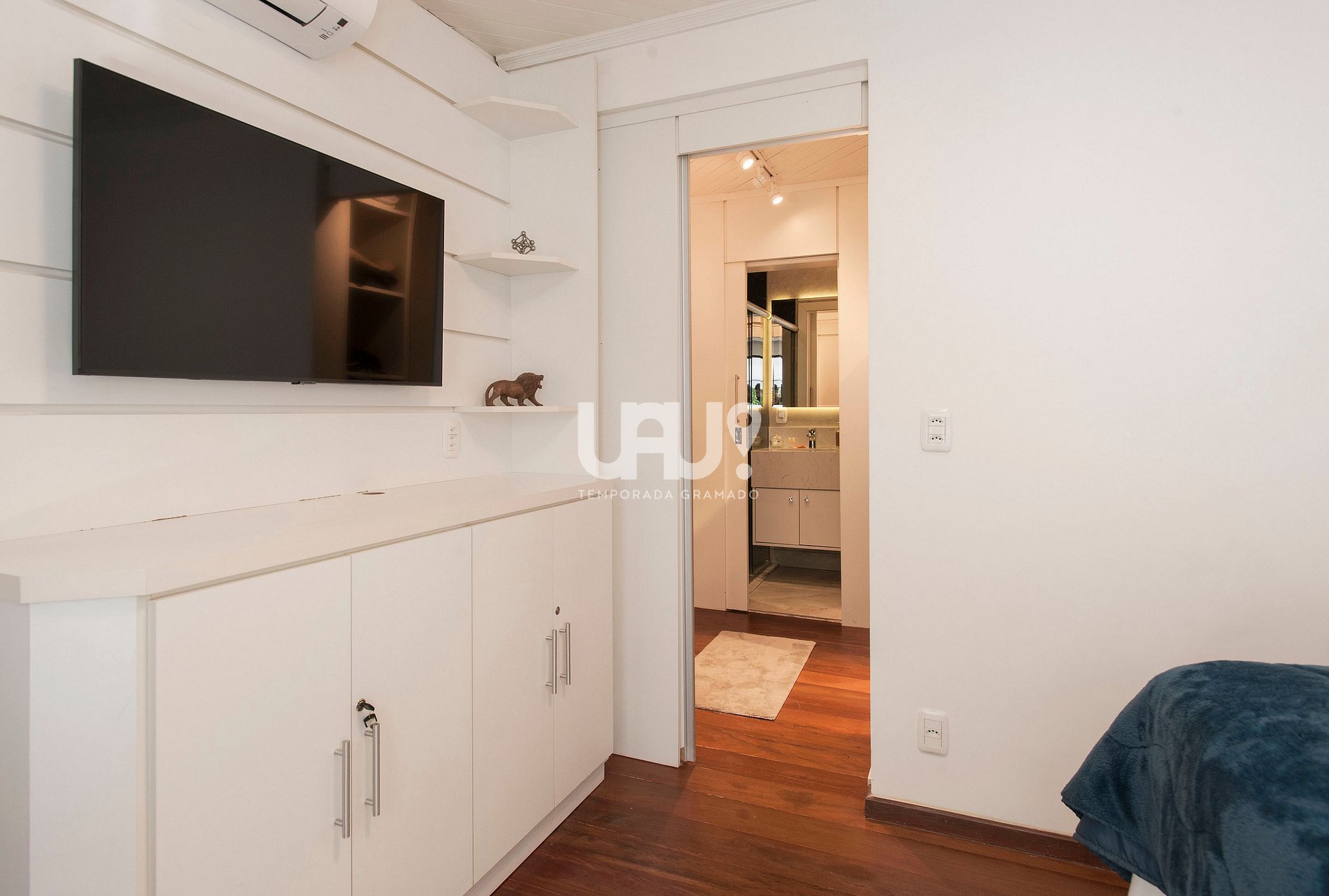 Dormitório/suíte com cama de casal, rouparia completa e split quente/frio (dormitório sem janela);